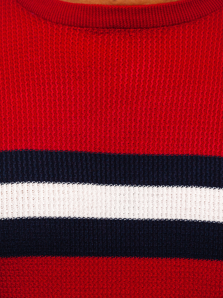 Puloverul roșu Bolf H2113 este un element universal în ținutele masculine. Disponibil in diverse variante coloristice. Puloverul are croiala simplă se va potrivi excelent pe siluetă Confecționat din60% acril, 30% lână și 10% elastan, datorită acestui lucru este foarte plăcut la atingere și comod. Are dungi originale din materiale combinate, ceea ce conferă un stil casual. Poți purta la diverse ocazii. Se va potrivi excelent in ținutele sport pentru bărbații activi. Combină la intalnirile cu prietenii cu blugi, bluză cu fermoar sau de asemenea geacă de blugi.