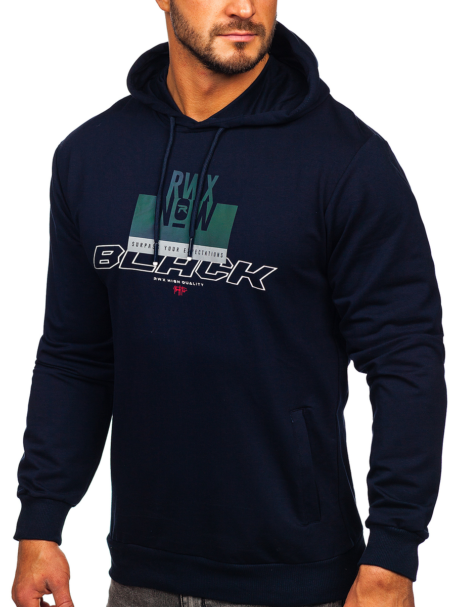 Hanoracul bleumarin Bolf 146347 cu imprimeu este alegerea cea mai bună pentru bărbații ce prețuiesc stilul. Bluza are imprimeu original in partea frontală. Confecționată in mai multe culori. Mânecile și finisarea cu elastice. Are două buzunare laterale fără inchidere glugă reglabilă.Acest model este ideal pentru fanii modului activ de viată. Poartă la training , jogging sau activităti sport in aer liber. Confecționată din material plăcut și comod de purtat. Stilul casual și sport conferă universalitate produsului. Combină cu bluză saublugi orijoggers. Îmbracă cu geacă sau geacă bombers ori geacă de blugi și obține o ținută excelentă.