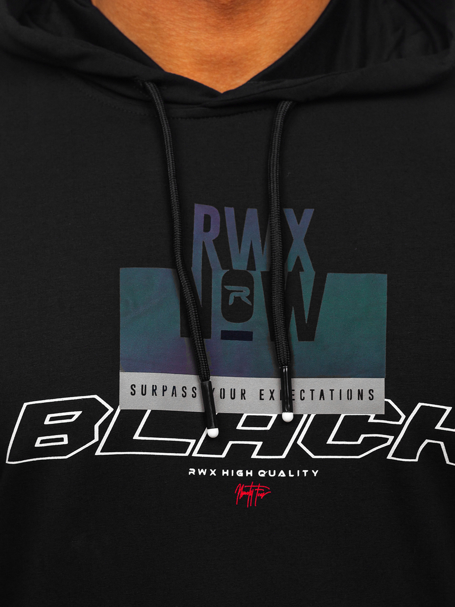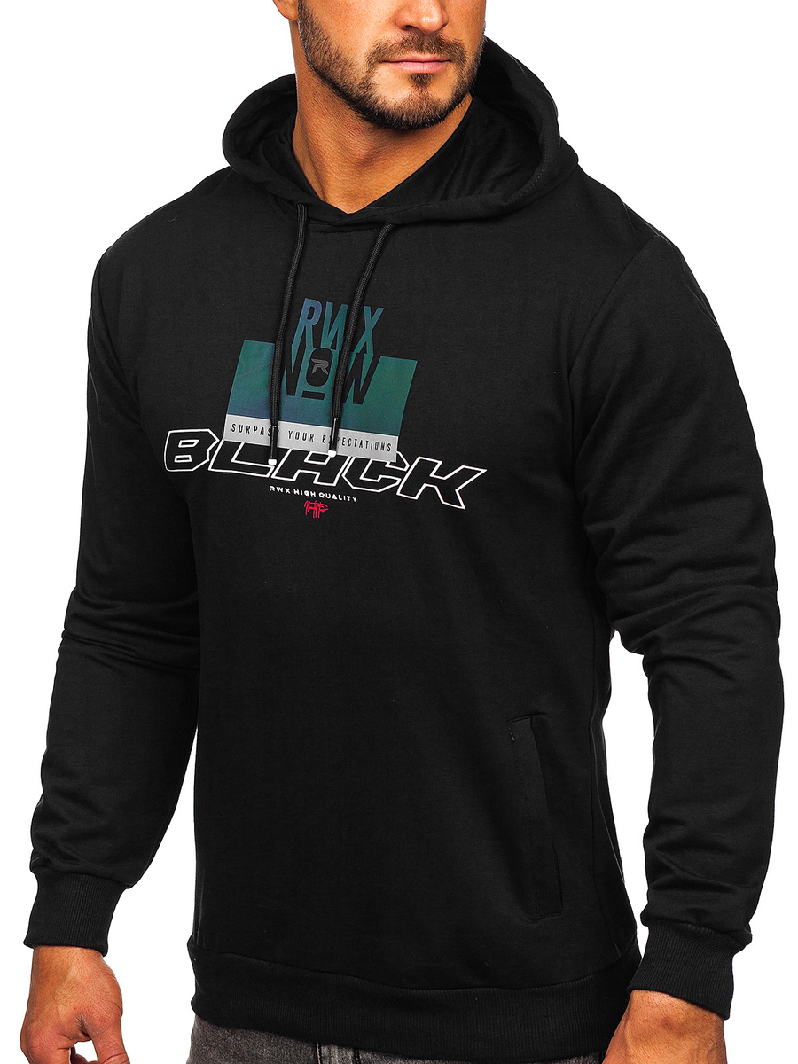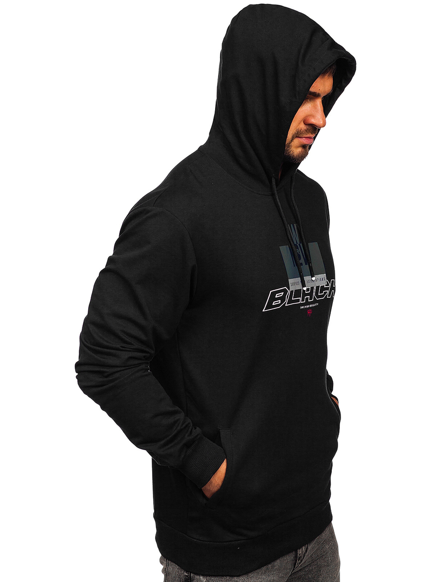 Hanoracul negru Bolf 146347 cu imprimeu este alegerea cea mai bună pentru bărbații ce prețuiesc stilul. Bluza are imprimeu original in partea frontală. Confecționată in mai multe culori. Mânecile și finisarea cu elastice. Are două buzunare laterale fără inchidere glugă reglabilă.Acest model este ideal pentru fanii modului activ de viată. Poartă la training , jogging sau activităti sport in aer liber. Confecționată din material plăcut și comod de purtat. Stilul casual și sport conferă universalitate produsului. Combină cu bluză saublugi orijoggers. Îmbracă cu geacă sau geacă bombers ori geacă de blugi și obține o ținută excelentă.