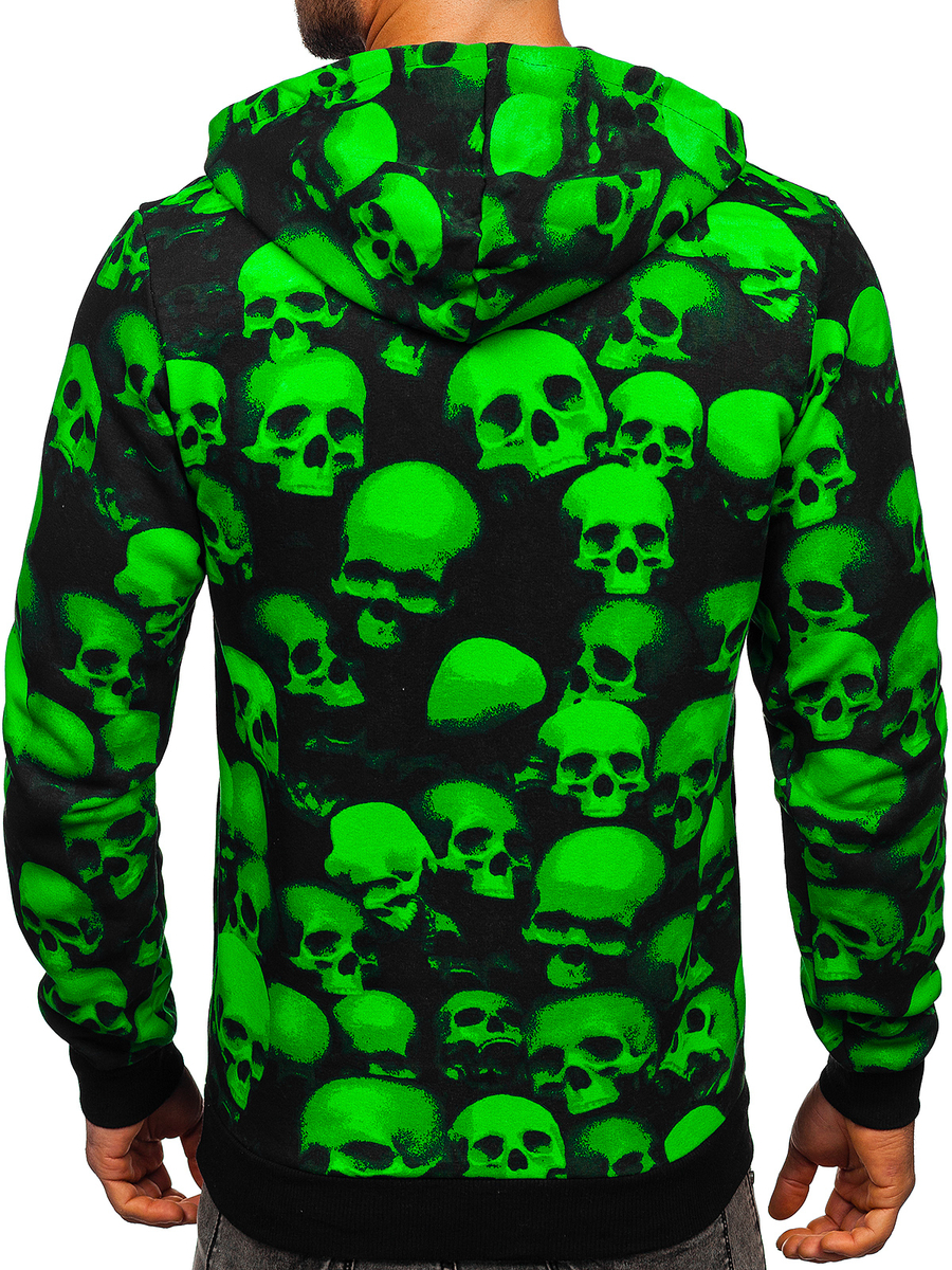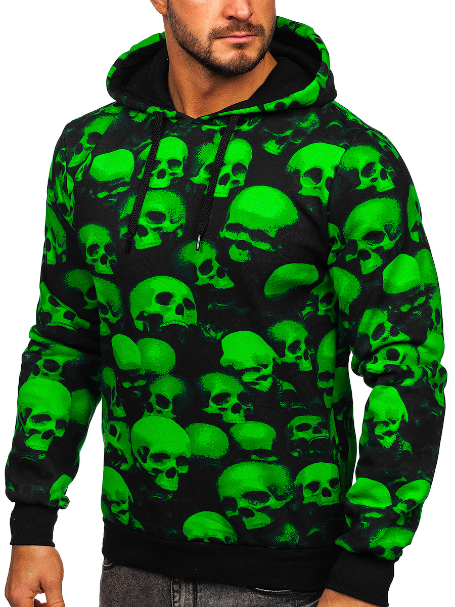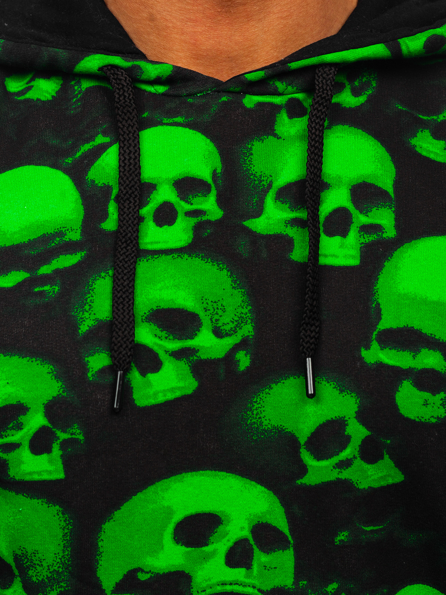 Hanoracul negru-verde cu imprimeu Bolf 141007 este baza in ținutele zilnice. Acest model are glugă reglabilă în două straturi. Mânecile și finisarea cu elastic ce protejează de frig și vânt. Confecționată din 70% bumbac și 30% poliester. Două buzunare laterale conferă caracter practic. Acest model se evidențiază prin imprimeurile decorative de culoare negru-verde. Hanoracul se va potrivi excelent la diverse ocazii si in fiecare anotimp. Poartă în activitățile sport cu <a0>pantaloni de training</a0> si geacă vei obține un look excelent. La ieșirile in oraș se va combina cu blugi, pantaloni cargo sau pantaloni joggers.