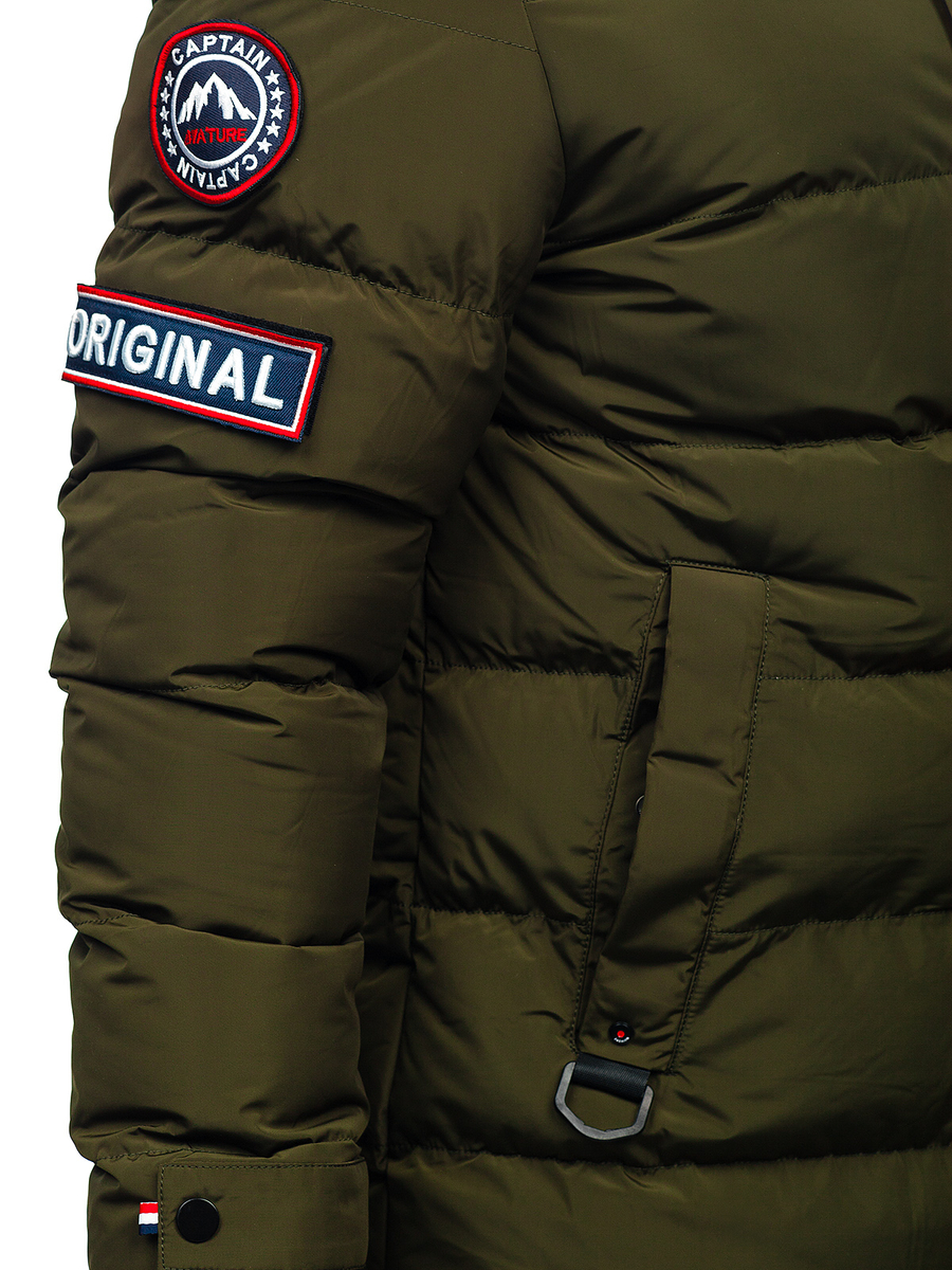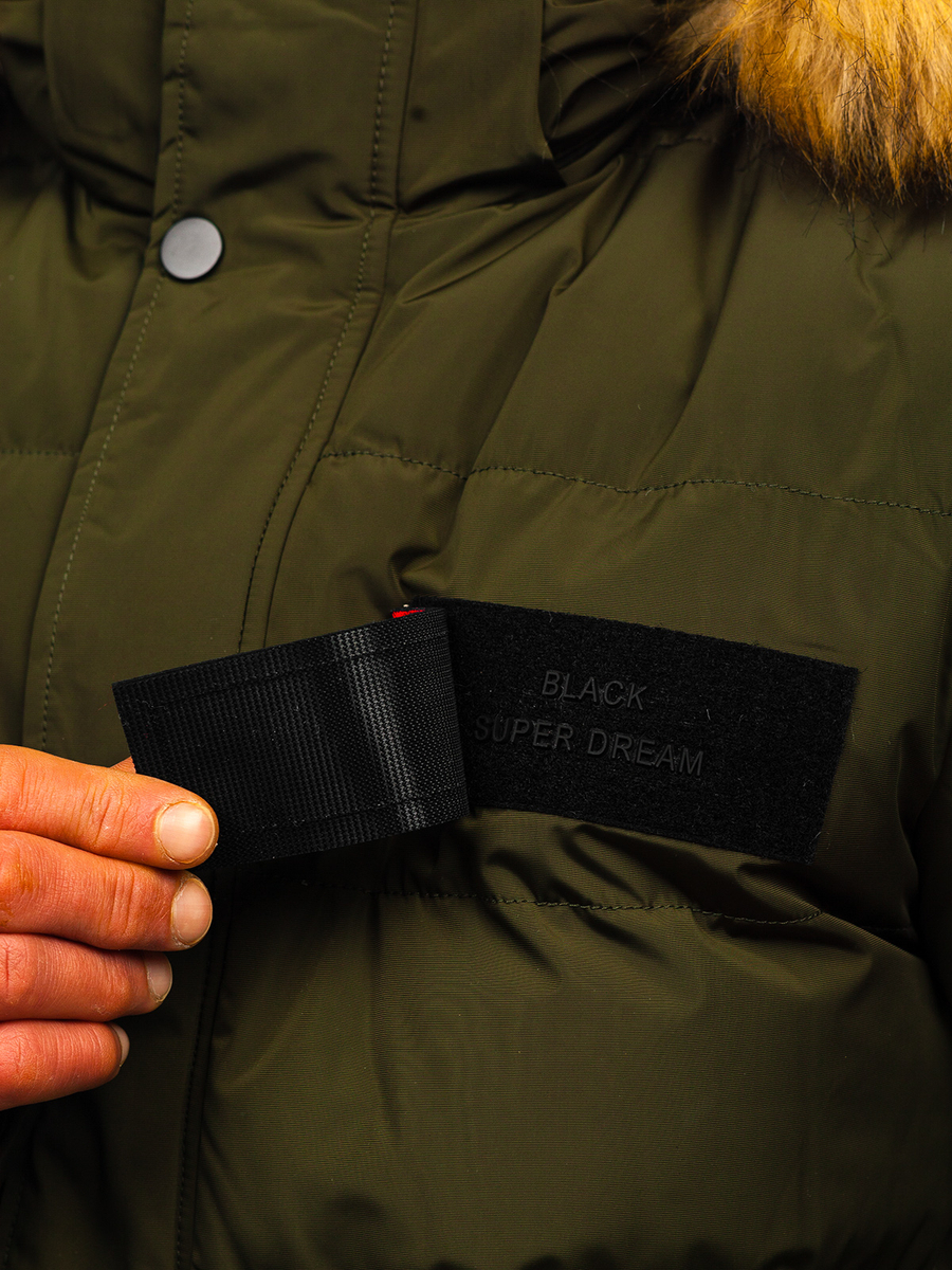 Geacă lungă kaki de iarnă Bolf 6476 are inchidere clasică cu fermoar strălucitor și nasturi. Guler tip tunică și glugă detașabilă, vei fi protejat de vânt și ploaie. La glugă de asemeneablană detașabilă. Model simplu și comod, vei arăta excelent. Aplicațiile decorative conferăcaracter. Geaca are două buzunare laterale cu inchidere la nasturisi buzunar interioare cu nastureMânecile reglabile cu velcro din interior finisate cu elastic, datorită carora vei fi protejat de frig și vânt.Se potrivește excelent la plimbare, intalnire cu prietenii sau ieșire in oraș. Geaca se va combina excelent cu blugi si pulovere clasice.