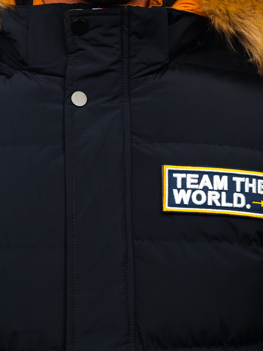 Geaca bleumarin de iarnă Bolf 6477 se potriveste ideal in sezonul de iarnă. Are inchidere cu fermoar clasic. Mânecile au reglare cu velcro din interior finisate cu elastic, datorită acestui lucru se va potrivi excelent pe silueta și protejeaza de frig. Are guler tip tunică și glugă detașabilă, datorită căreia vei fi protejat de vânt și ploaie. La glugă blanădetașabilă suplimentar.Modelul se potrivește excelent pe siluetă. Detalii decorative la piept conferăcaracter și arată excelent. Geaca are două buzunare laterale cu inchidere lanasturibuzunarul interior cu nasture. Geaca este confecționată din materiale de calitate înaltă, datorită acestui lucru este plăcută la atingere. Se va potrivi excelent la plimbare, intalnire cu prietenii sau ieșire in oraș. Geaca se va combina excelent cu blugisi pulover clasic.