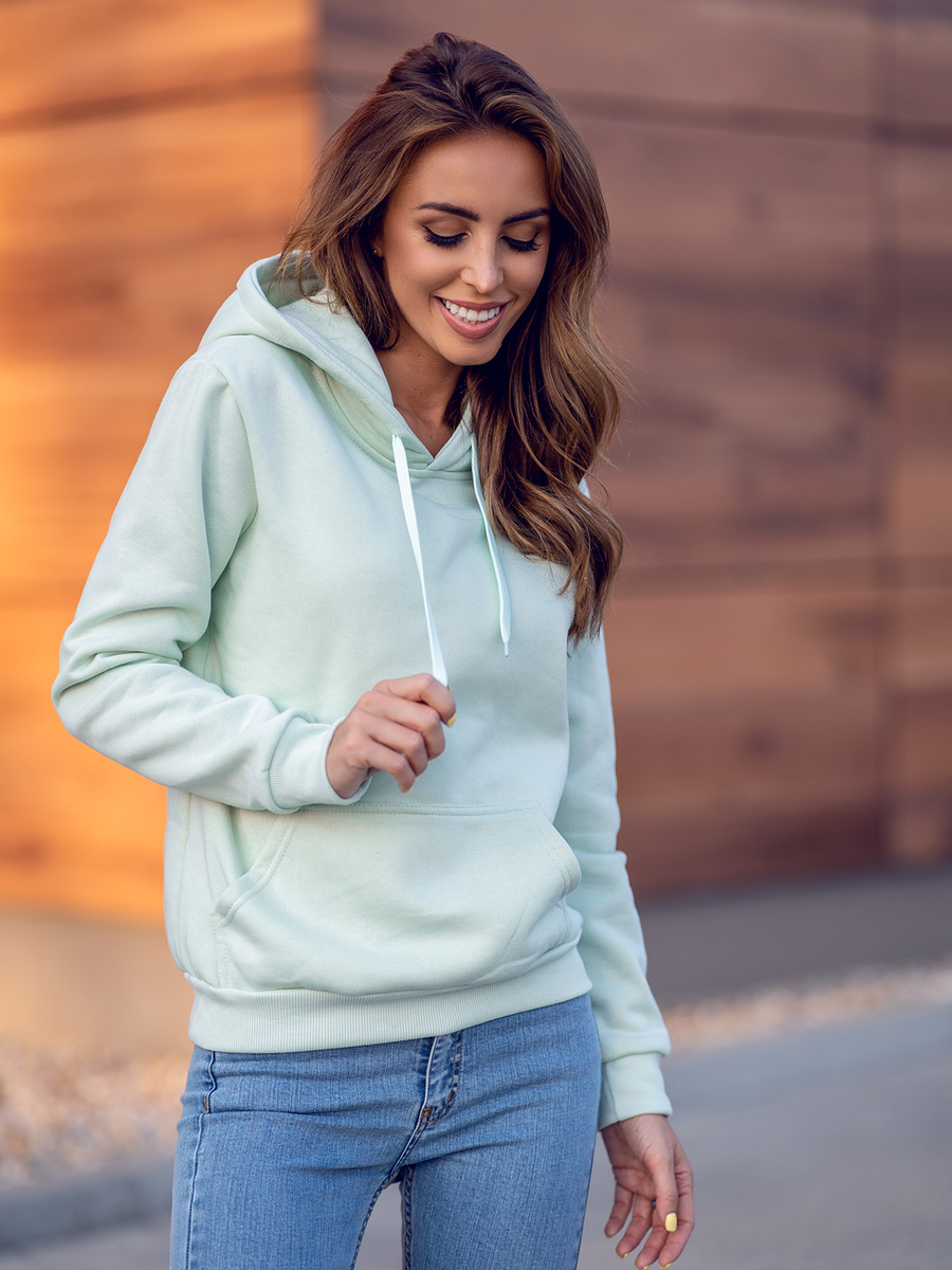 Bluză verde-menta dame Bolf W02B. Croiala clasica confectionata din material moale la atingere. Bluza poate fi cumpărată in diverse culori originale. Are glugă reglabilă cu șnur și buzunar practic tip cangur in față. Terminația bluzei cu elastice largi. Bluza se recomandă pentru femeile ce preferă minimalismul și stilul sport in modă. Este foarte comodă și stilată. La sigur va fi must have in garderoba femeilor. Model clasic simplu se va potrivi în ținutele zilnice și de strada Hanoracul are buzunar mare, la sigur trebuie sa ai și tu in garderoba ta. Bluza se va potrivi in diverse ocazii libere, relaxate in oras.