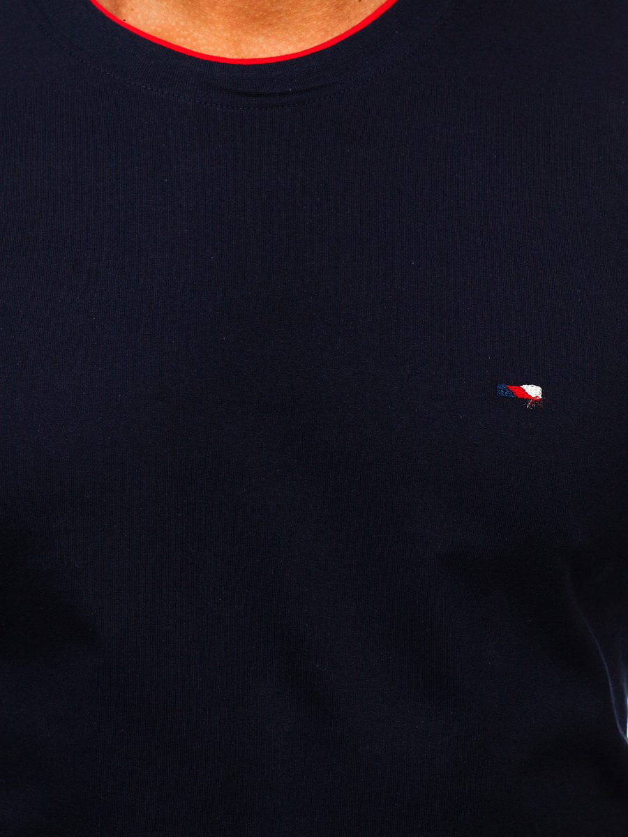 Tricou bleumarin Bolf 14316 are croiala clasică și confecționat din material de înaltă calitate. Acest model este disponibil în mai multe culori, de asemenea în culori expresive. Se va potrivi pe siluetă și evidențiază talia. Are decolteu rotunjit. Tricoul tip basic va fi o bază excelentă în multe ținute interesante Tricoul se va potrivi ideal zilnic, este un produs must have în garderoba bărbaților. Se va combina excelent cu blugi, pantaloni cargo sau joggers. Poți îmbrăca cu hanorac și, geacă de piele origeacă bomber.