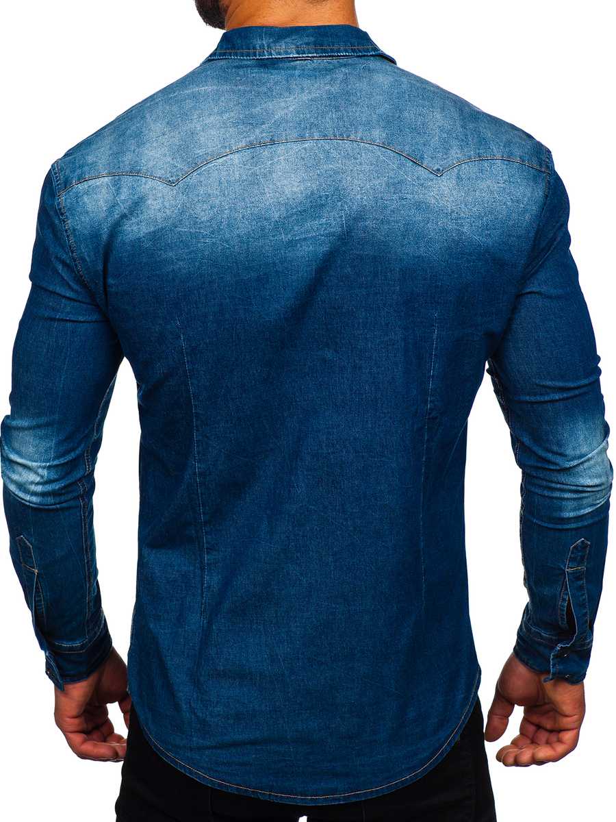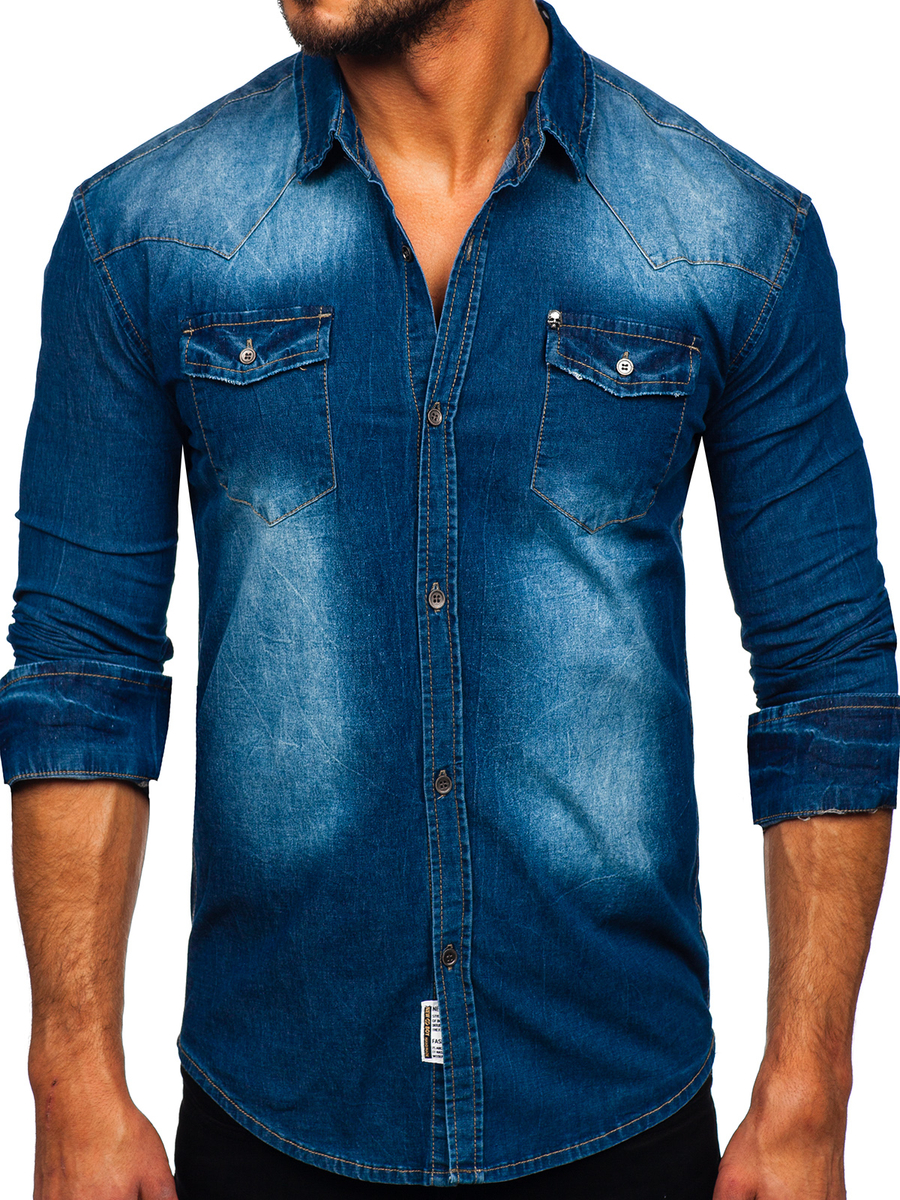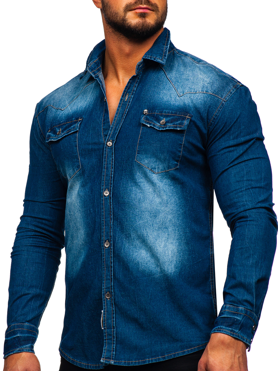 - Jeansowa koszula męska w kolorze niebieskim