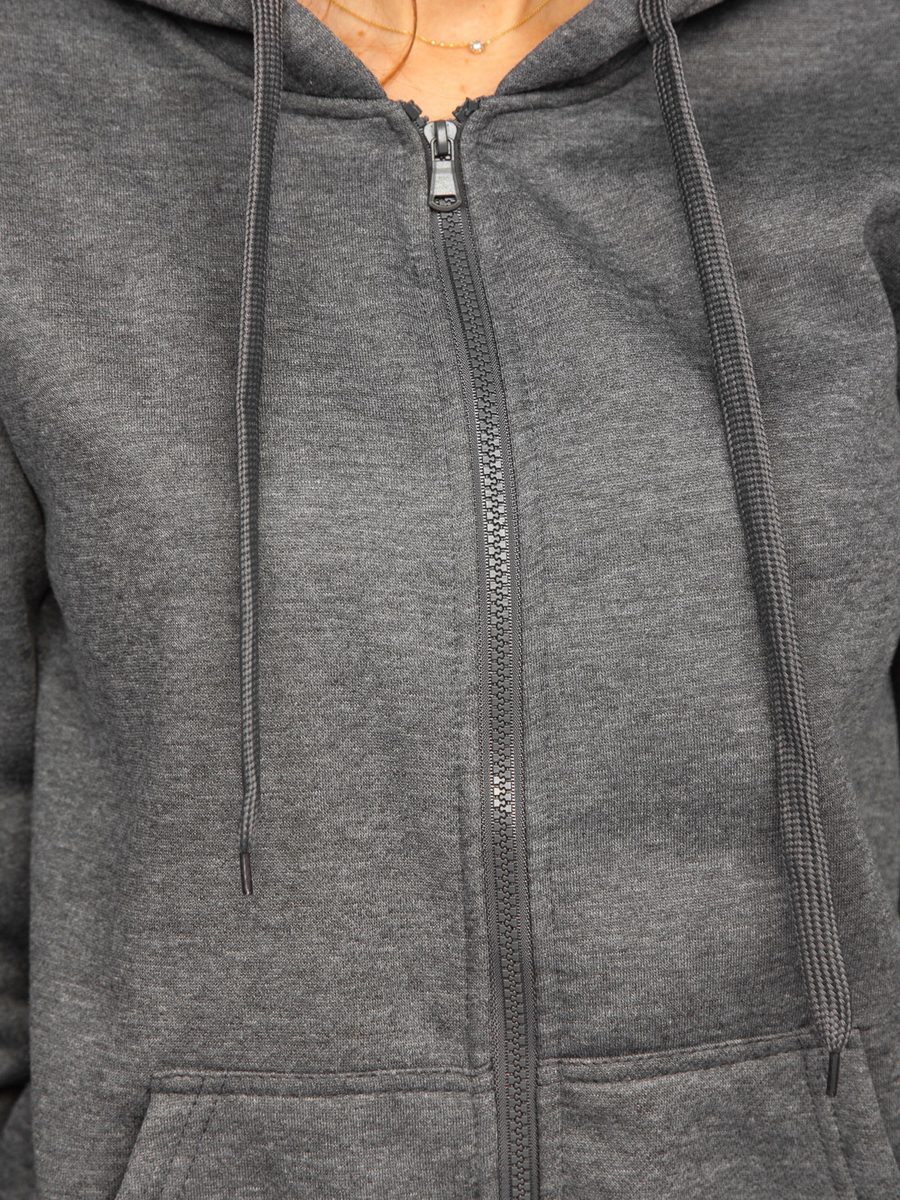 Compleu de training grafit dame Bolf 0003 un model pentru fanii ținutelor sport. Setul cuprinde bluza și pantalonii. Bluza are închidere cu fermoar strălucitor, glugă reglabilă și două buzunare. Pantalonii de training au reglare în talie cu elastic puternic și șnur. Au două buzunare în față și finisare la picioare cu elastic, se va potrivi ideal pe siluetă Model sport comod și stilat. Produsul este confectionat din material placut la atingere. Îl poți purta la training în ținutele sport, escapade la munte, acasă sau zilnic Combină cu geacă, sport sau vestă.