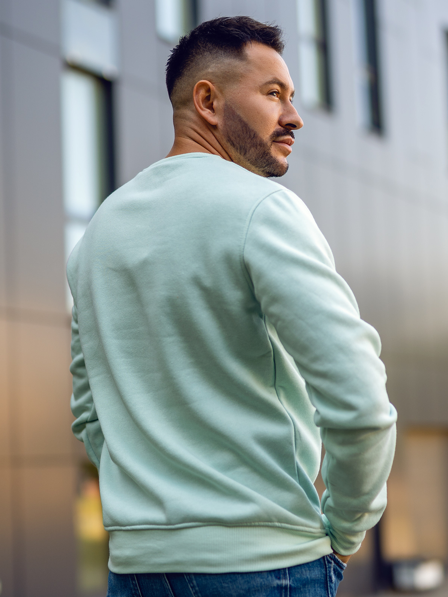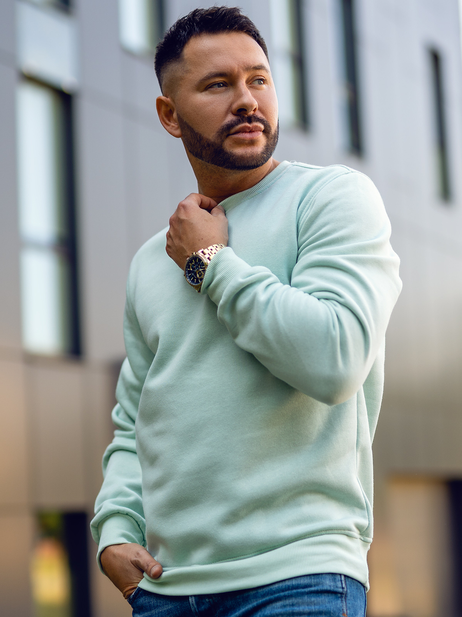 Hanoracul pentru bărbați Bolf 2001A fără glugă de culoare mentă este o propunere din categoria de bază. Acest model a fost confecționat în culori intensive, datorită acestui lucru pot fi combinați în ținutele zilnice. Bluza se recomandă fanilor minimalismului. Netede, comode și cusute calitativ. Must have în dulapul masculin. Model clasic simplu se va potrivi în ținutele zilnice și de strada Mânecile și terminatia bluzei terminate cu elastice. Produsul este confectionat din material placut la atingere .