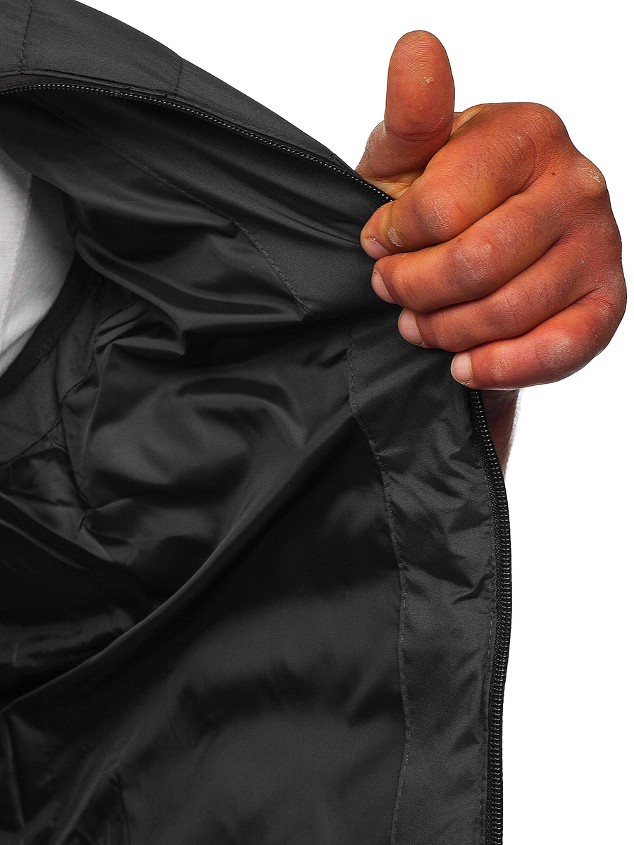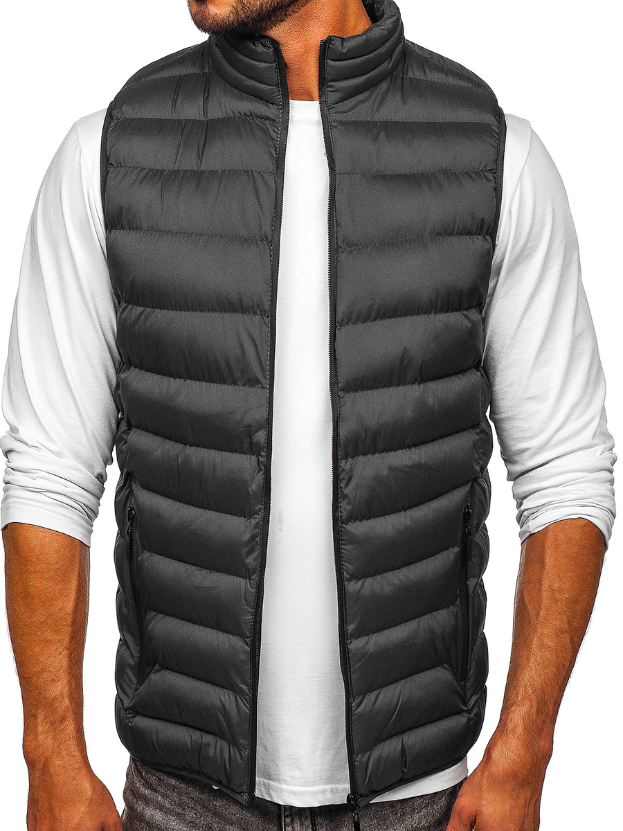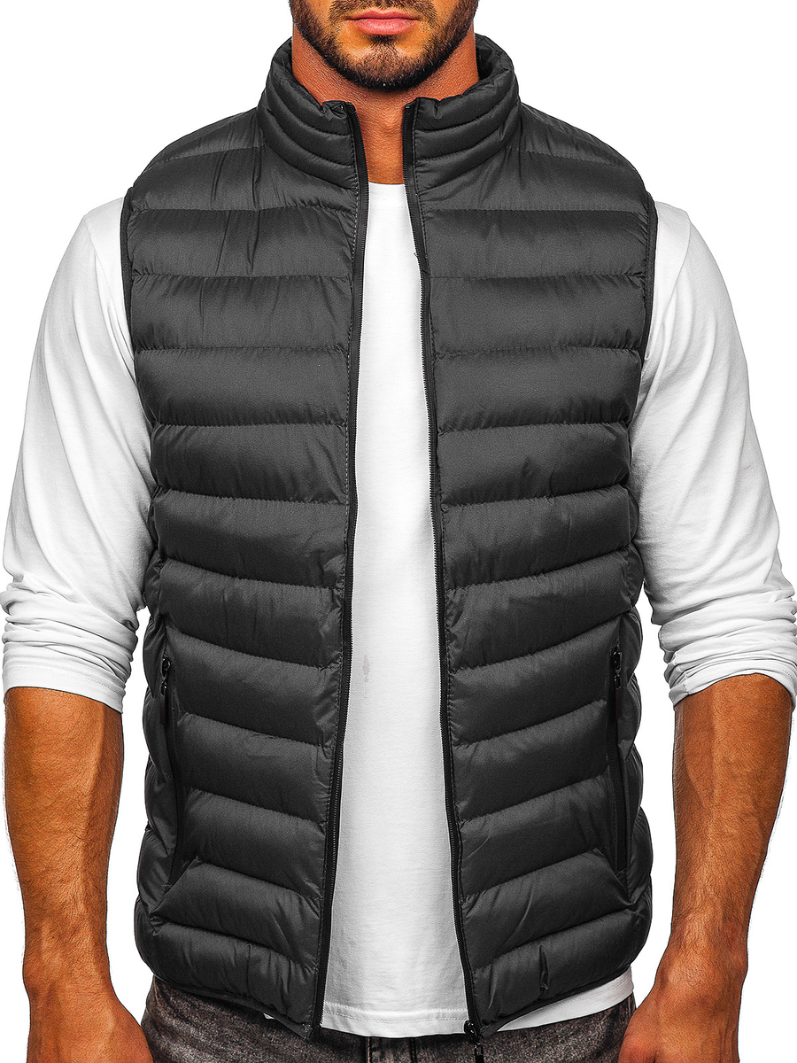 Vestă grafit matlasată Bolf 5M711 este alegerea perfectă pentru crearea ținutelor de toamnă. Vestă stilată, matlasată cu inchidere la fermoar strălucitor. Are guler tip tunică. Două buzunare exterioare cu închidere la fermoar care conferă caracter. Finisarea cu dungi elastice și la mâneci. Vesta a fost confecționată în mai multe culori. Model sport simplu cu ajutorul căreia puteți crea o ținută excelentă. Vesta va fi ideală pentru bărbații ce preferă modul activ de viață. Vei folosi zilnic, in oraș, plimbări sau intalniri cu prietenii. În combinare cu tricou și pantaloni joggersvei obține o ținută excelentă.