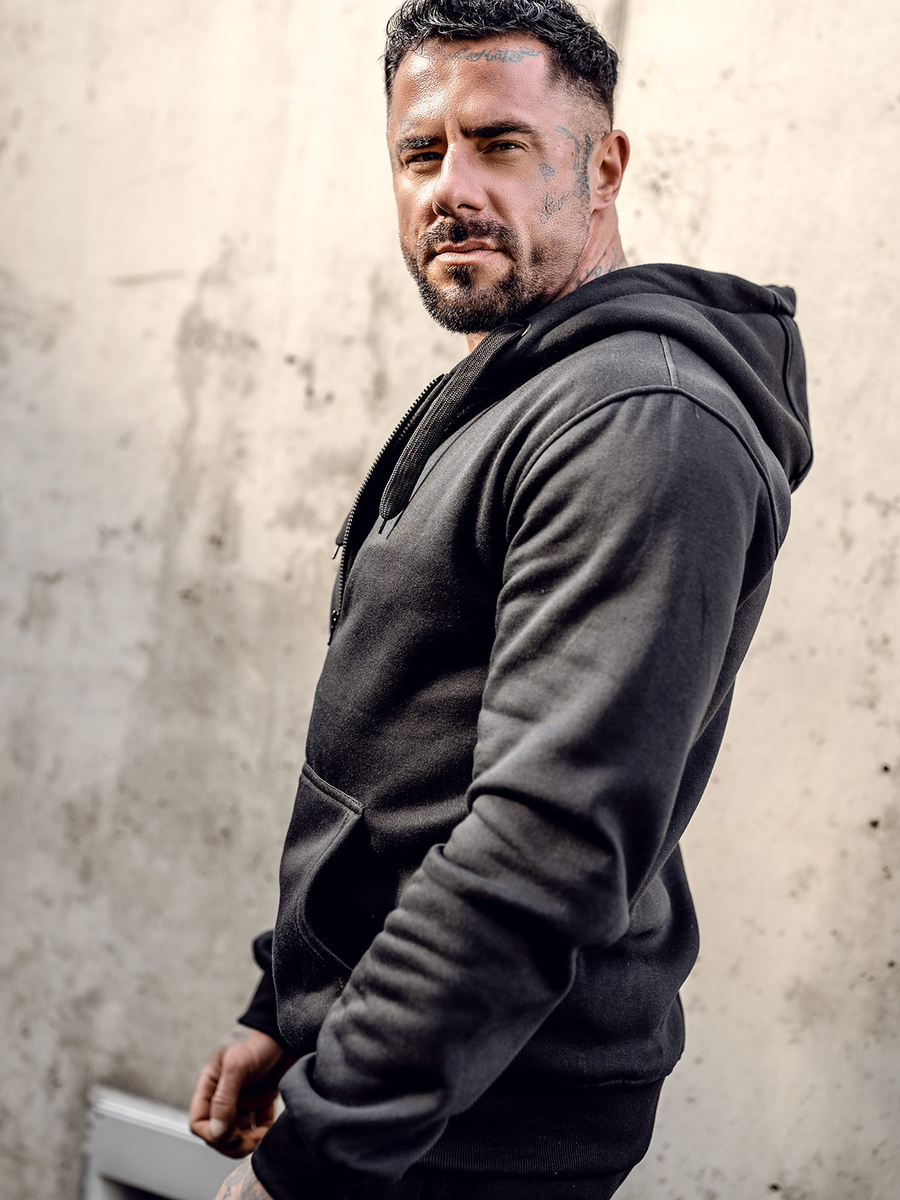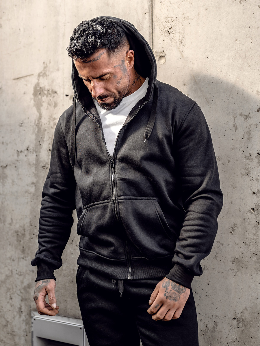 Hanorac Bolf 2008A negru cu închidere la fermoar. Croiala clasica confectionata din material moale la atingere. Produsul se caracterizează prin diversitatea culorilor expresive. Are glugă reglabilă și buzunare pe laterala. Terminația bluzei și mânecile cu elastice puternice. Bluza se recomandă fanilor minimalismului. Confecționată calitativ și comodă. Must have în dulapul masculin. Model clasic simplu se va potrivi în ținutele zilnice și de strada Bluza cu fermoar este un model excelent pe care trebuie să-l ai în garderoba ta chiar și în mai multe culori. De la negru clasic, bleumarin și roșu până la culori mai extravagante portocaliu sau roz. Bluza se va potrivi la diverse ocazii pe orice anotimp.