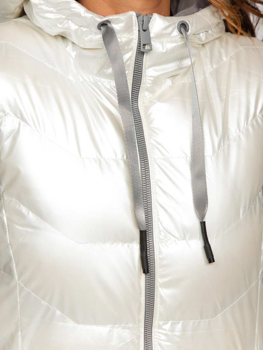 Opiniile utilizatorilor despre Vestă albă lungă matlasată cu glugă dame Bolf 7043