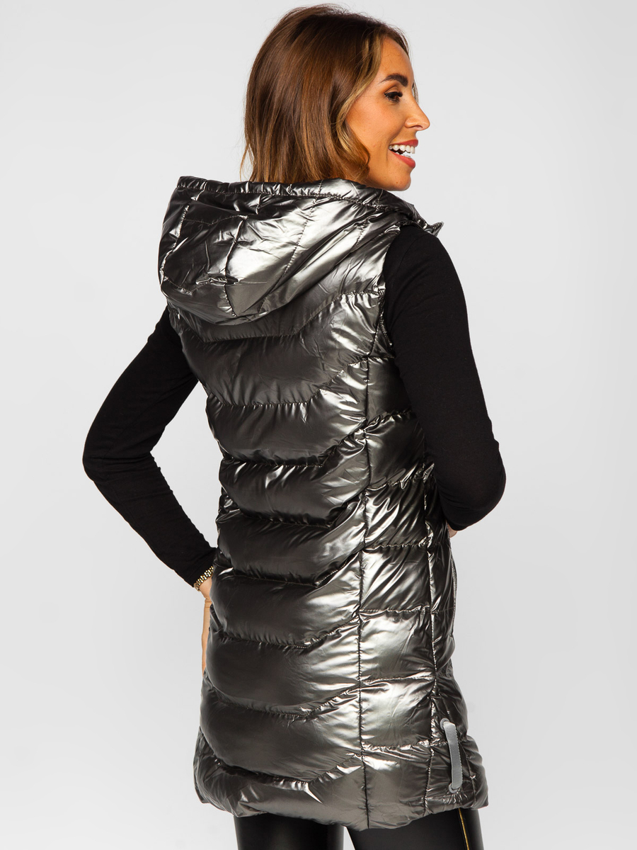 Opiniile utilizatorilor despre Vestă argintie lungă matlasată cu glugă dame Bolf 7043