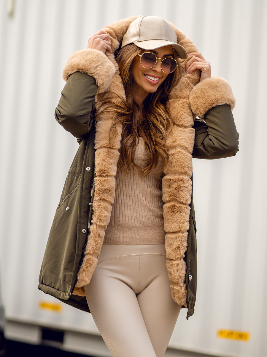 Opiniile utilizatorilor despre Geacă de iarnă parka cu glugă kaki dame Bolf 7033