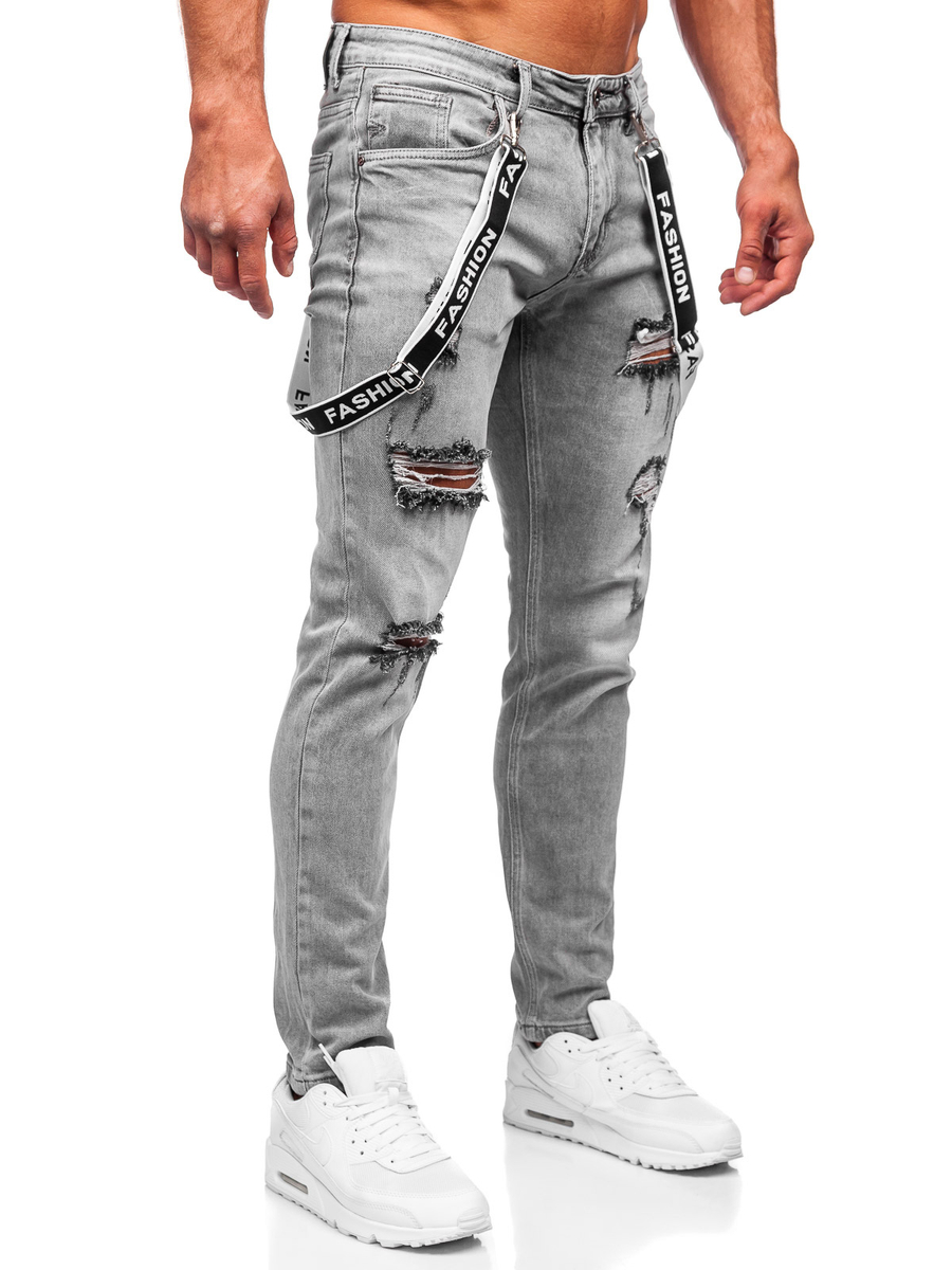 Blugi gri slim fit cu brețele Bolf KX9252 un model pentru cei ce preferă ținutele originale. Pantalonii au în set brețele ce conferă un caracter original. Rupturile stilate conferă un stil excepțional. Pantalonii sunt foarte practici, au două buzunare in față si la spate. Confecționați cu mare atenție la detalii. Blugii sunt o bază universală pentru ținutele zilnice. Poți purta la plimbare, shopping sau întâlnirile cu prietenii. Creează un look minunat combinat cu tricou, ușor geacă sau geacă de piele.