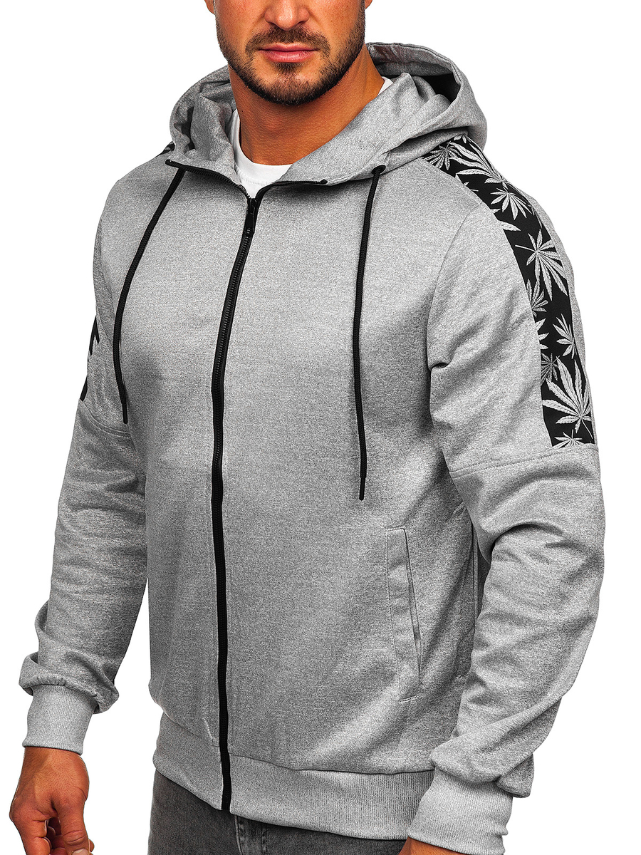 Hanorac gri cu fermoar Bolf 27B8120 se va potrivi în fiecare anotimp! Hanoracul cu închidere la fermoar are glugă practică, reglabilă. Finisarea și mânecile cu elastice ce protejează de vânt și în zilele reci. Imprimeu frumos la mâneci conferă stil. Bluza are două buzunare laterale fără inchidere. Este confecționată din material foarte plăcut la atingere. Se va potrivi ideal zilnic cât și la training. Combină cu pantaloni de treningși vei crea un outfit sport. Combină hanoracul zilnic cublugi, tricou și geacă de piele.