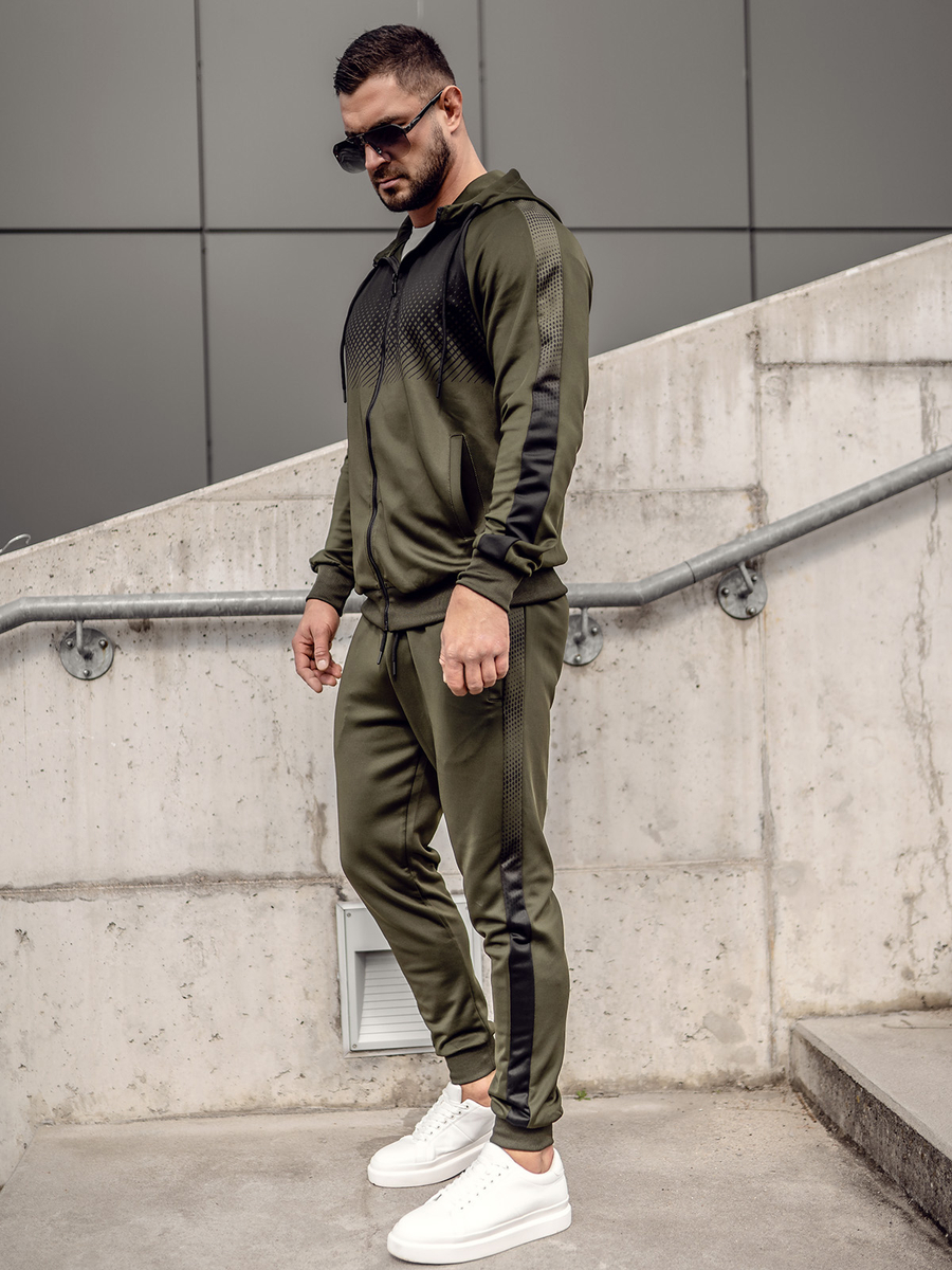 Trening kaki cu glugă Bolf 27C8116 este un trening clasic, comod și stilat. Setul cuprinde hanorac și pantaloni . Pantalonii au reglare în talie cu elastic, șnur și două buzunare. Model sport comod și stilat. Hanoracul are fermoar strălucitor și glugă practică, guler tip tunică. Produsul este confectionat din material placut la atingere. Compleu de training poate fi folosit ca bază pentru a combina cu alte ținute sport. Se va combina ideal cu tricou, veste sau geci sport.