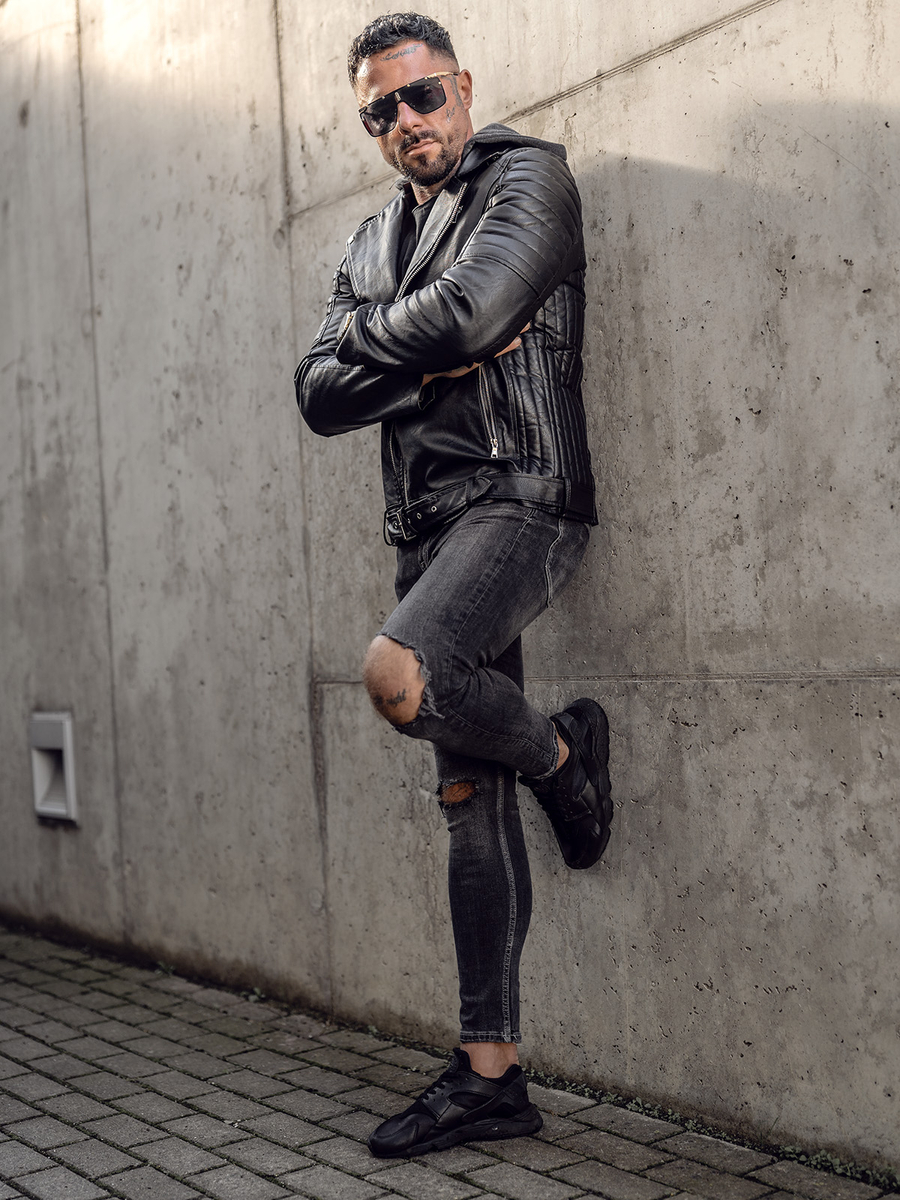 Geacă neagră de piele Bolf 11Z8005 - este clasica perfectă într-o ediție modernă. Confecționată din piele ecologică cu închidere la fermoar. Geaca de piele este mega stilată, se evidențiază din alte geci! Suplimentar are finisarea reglabilă cu închidere decorativa. Geaca are glugă detașabilă ce imită bluza. Are două buzunare practice cu închidere la fermoar și buzunar la piept . Stilul casual permite să combini geaca în mai multe ținute. Alegi stilul clasic? Combină geaca cu blugi si tricou!