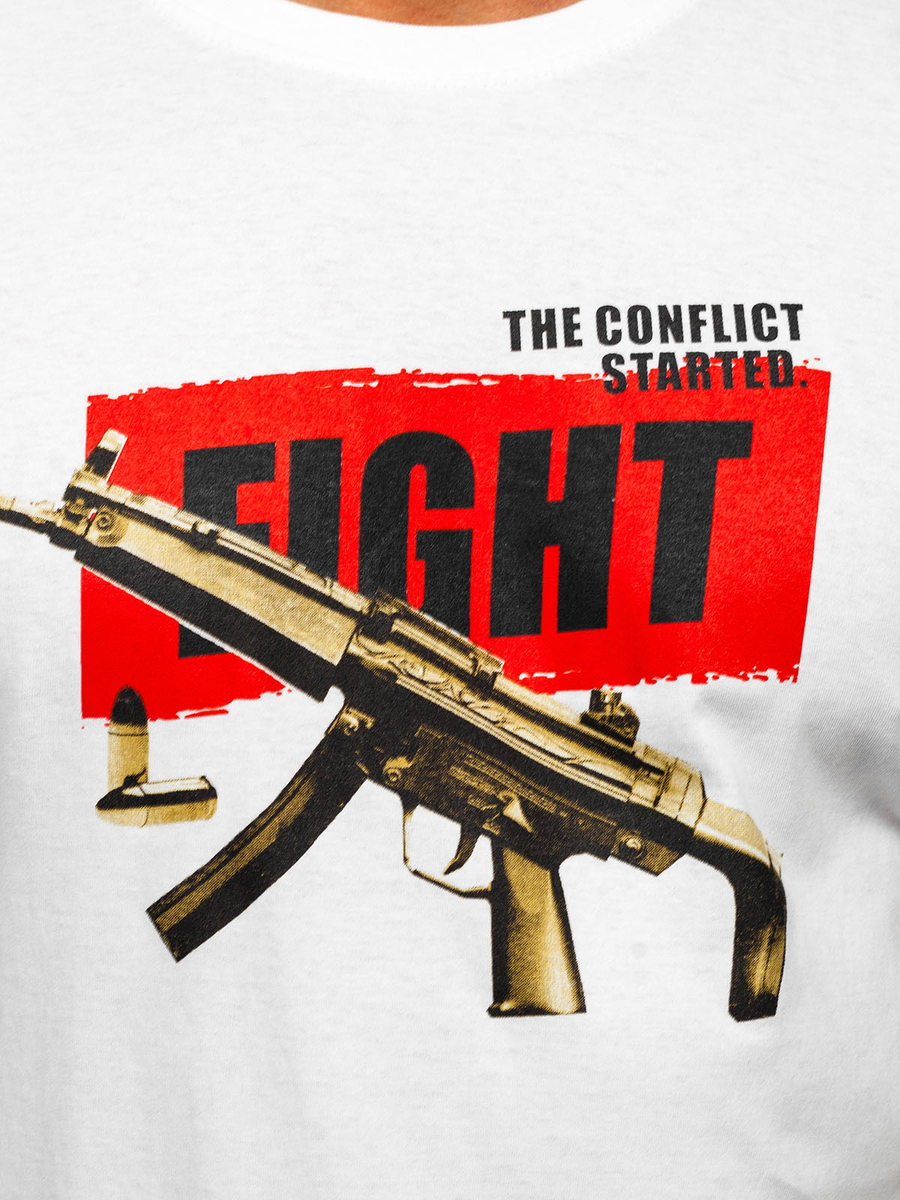 Tricou din bumbac alb cu imprimeu Bolf 14709 se va potrivi practic în fiecare ținută! Croiala simplă decolteu rotunjit, se potrivesc pe fiecare siluetă Produsul a fost confecționat din 100% bumbac, este plăcut la atingere și foarte comod. Datorită imprimeului original în partea frontală tricoul obține un stil frumos. Se va potrivi excelent în ținutele sport pentru persoanele active și ținutele zilnice Outfit sport clasic, combină cu tricou stilat pantaloni de trening și bluză!