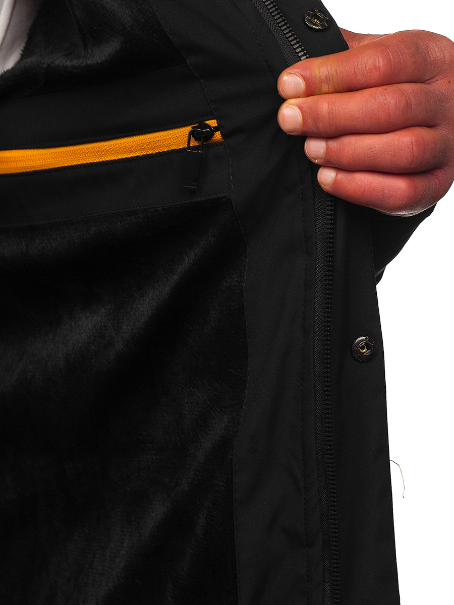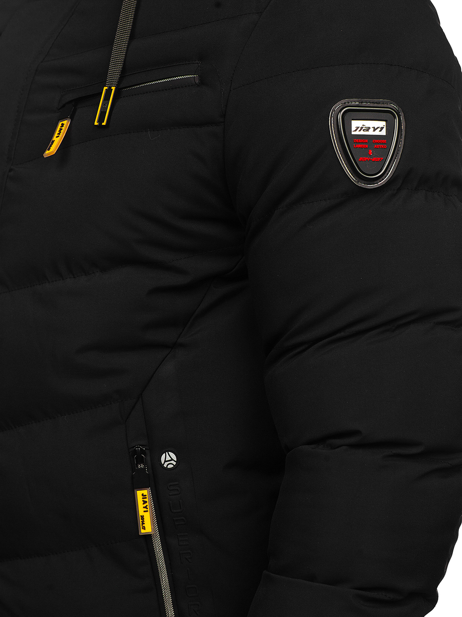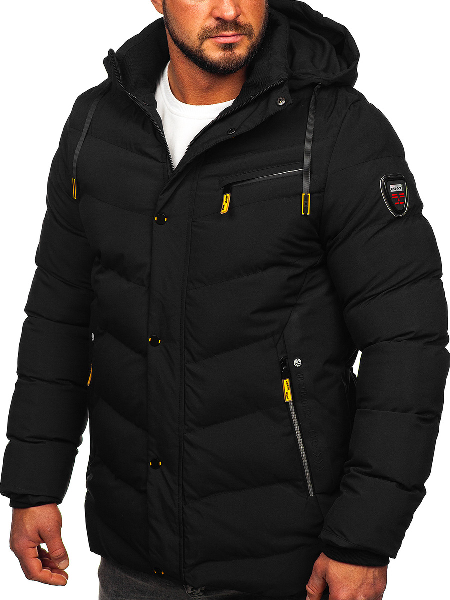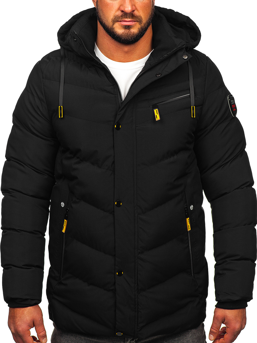 Geaca neagră de iarnă Bolf 22M59, datorită izolării din interior se potrivește perfect în zilele reci și conferă stil. Are închidere cu fermoar strălucitor și glugă reglabilă, guler tip tunică. Are buzunare exterioare, buzunare la piept cu fermoar strălucitor și buzunar interior unde poți depozita diverse lucruri. Geaca se va potrivi excelent pe siluetă, datorită finisării mânecilor din interior cu elastic. Aplicația decorativă la mânecă conferă caracter și inscripția la guler. Geaca se va combina perfect cu blugi si bluză!