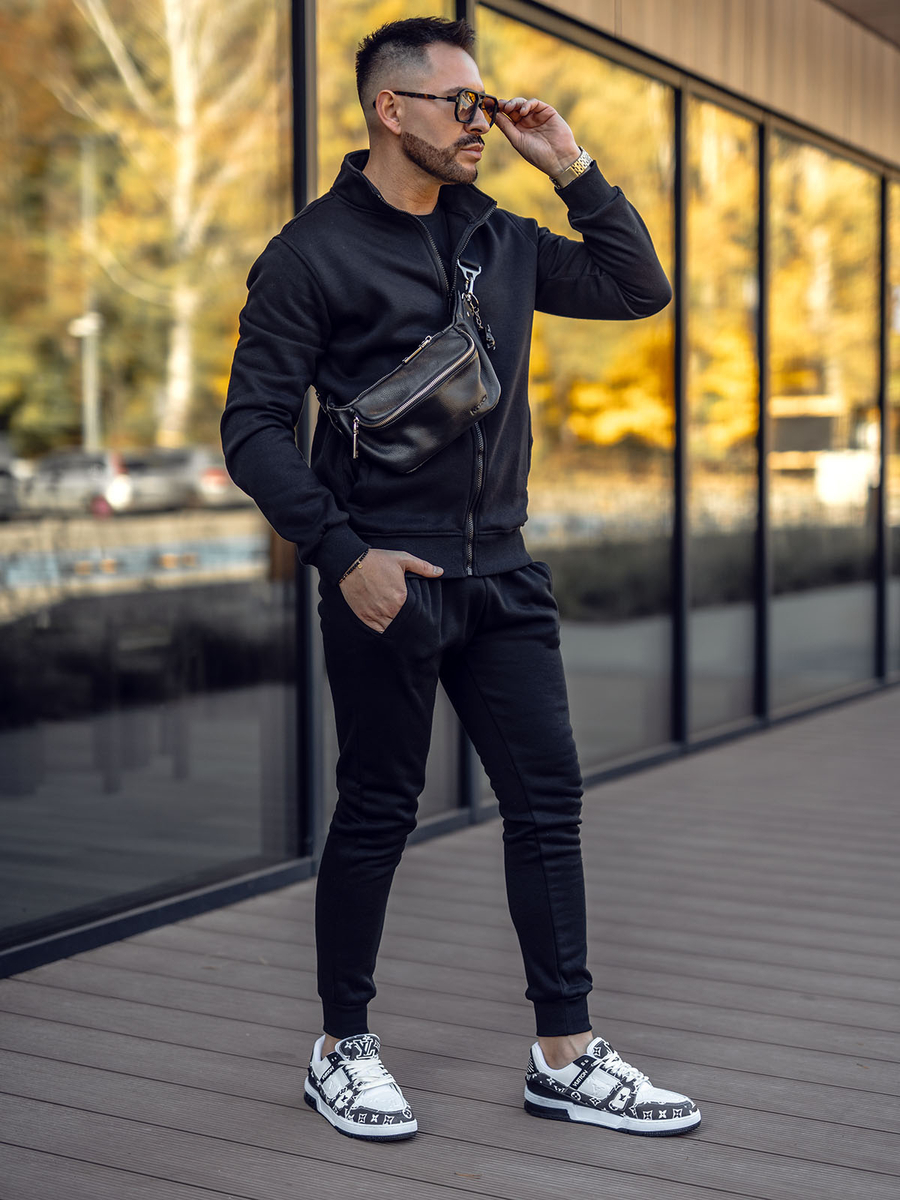 Trening negru Bolf 10385 este compleu de trening sport, compus din hanorac și pantaloni de trening. Hanoracul are închidere cu fermoar strălucitor și buzunare exterioare. Pantalonii reglabili în talie cu elastic puternic și șnur, au două buzunare exterioare. Model sport comod și stilat. Produsul este confectionat din material placut la atingere. Compleu de training poate fi folosit ca bază pentru a combina cu alte ținute sport. Atât hanoracul cât și pantalonii pot fi combinați cu alte articole ale garderobei, pentru a obține ținute excelente. Costumul poate fi combinat cu Tricou sau geacă ușoară ori sport.