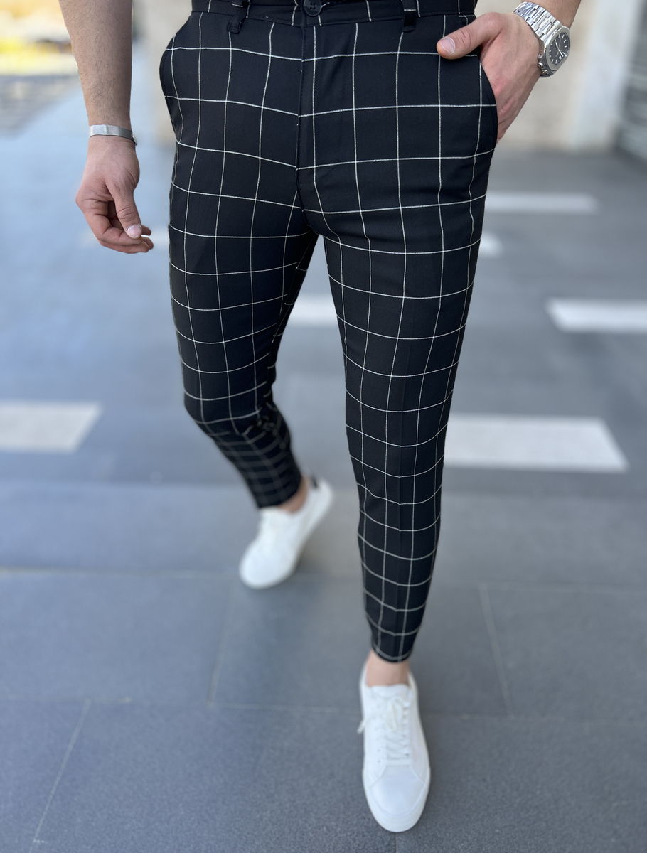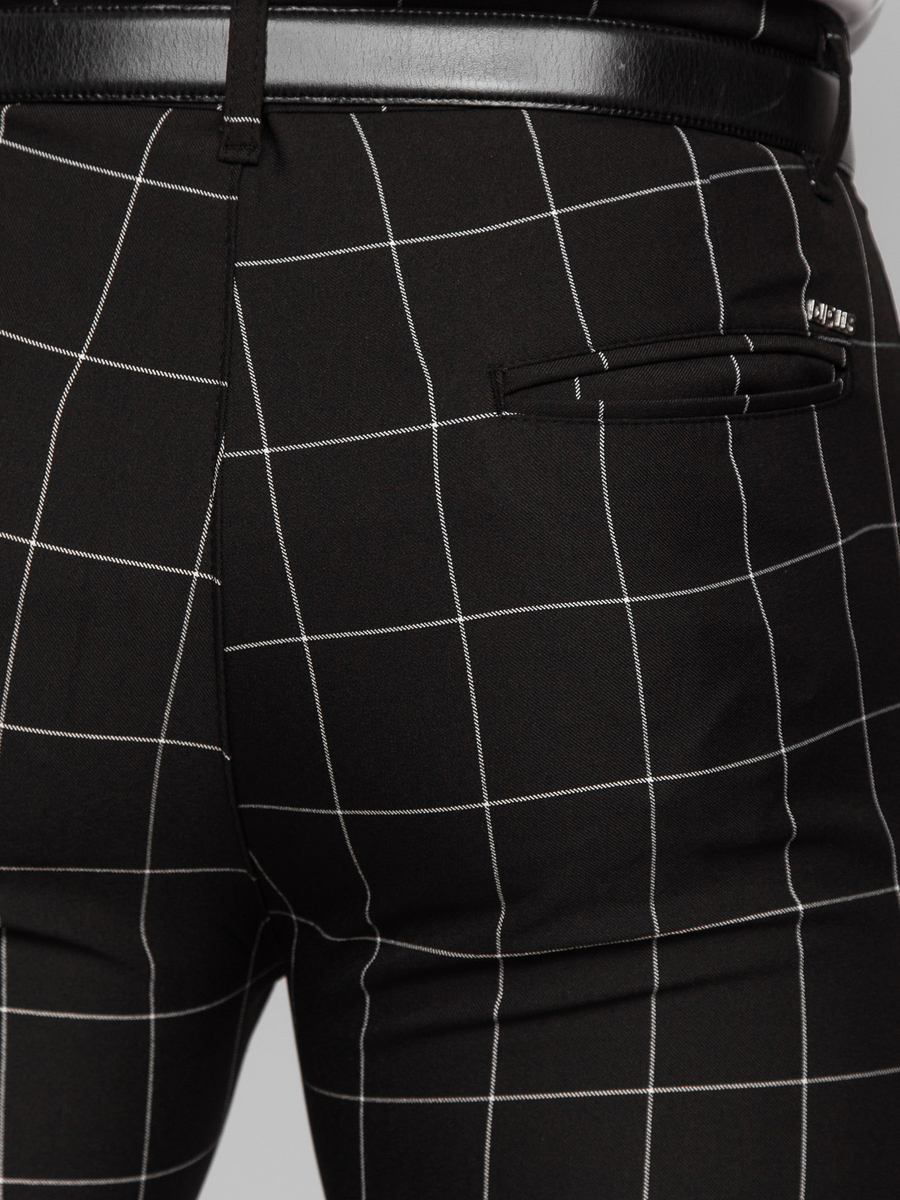 Pantalonii negri pentru bărbați în carouri Bonley 0040 sunt perfecti pentru iubitorii unui look elegant. Pantalonii cu picior clasic, lung, se prind cu fermoar și nasture. Acest model are buzunare practice unde poți păstra diverse lucruri Două sunt situate în spate și două în față. Sunt realizate din materiale de cea mai înaltă calitate, ceea ce le face excepțional de confortabile și plăcute la atingere.Panourile chino sunt atemporale, confortabile, practice și arată întotdeauna bine.Asociați-le cu o jachetă de piele și un tricou și veți obține un look perfect pentru aproape orice ocazie.