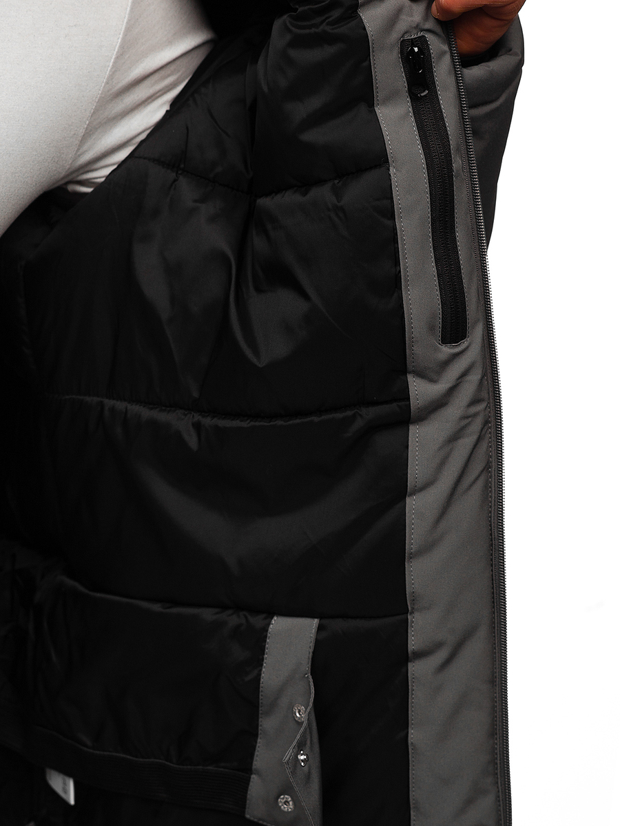 Jacheta pentru sporturi de iarnă pentru bărbați din grafit Bolf HH011A este o alegere excelentă pentru lunile mai reci. O jachetă de iarnă cu glugă se va potrivi tuturor gusturilor bărbaților. Are fermoar strălucitor. Gluga este detașabilă și reglare 2D. Guler înalt tip tunică, închiderea cu fermoar, protejează de frig Un element practic sunt buzunarele: două laterale cu fermoar, unul la piept și două interioare cu velcro. Mânecile reglabile cu velcro, finisate din interior cu elastic Produsul este universal se va potrivi la training, plimbare sau ieșire in oraș. Confecționat din 94% poliester și 6% elastan. Va arăta excelent cu blugi sau pantaloni de training.