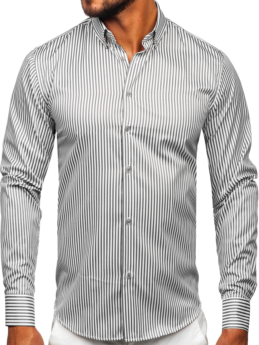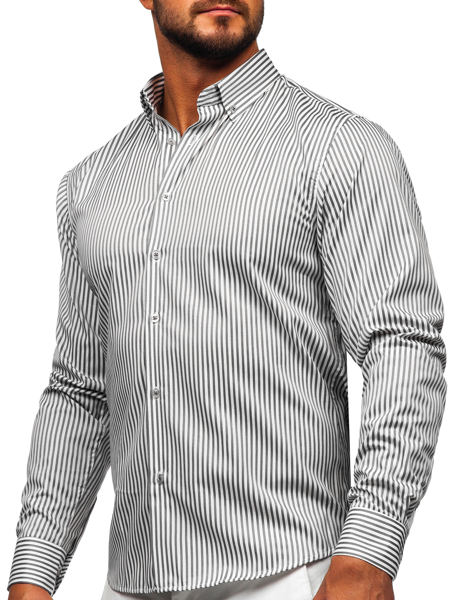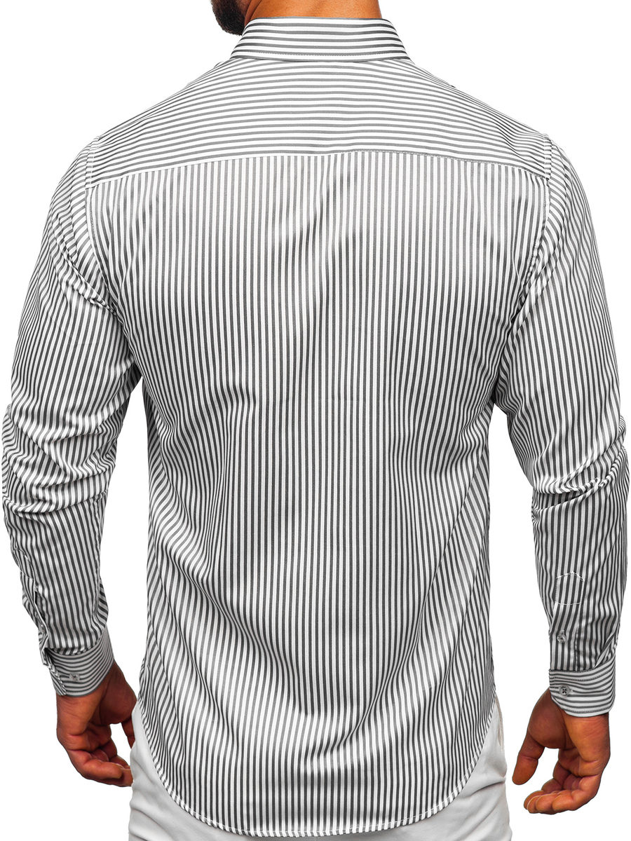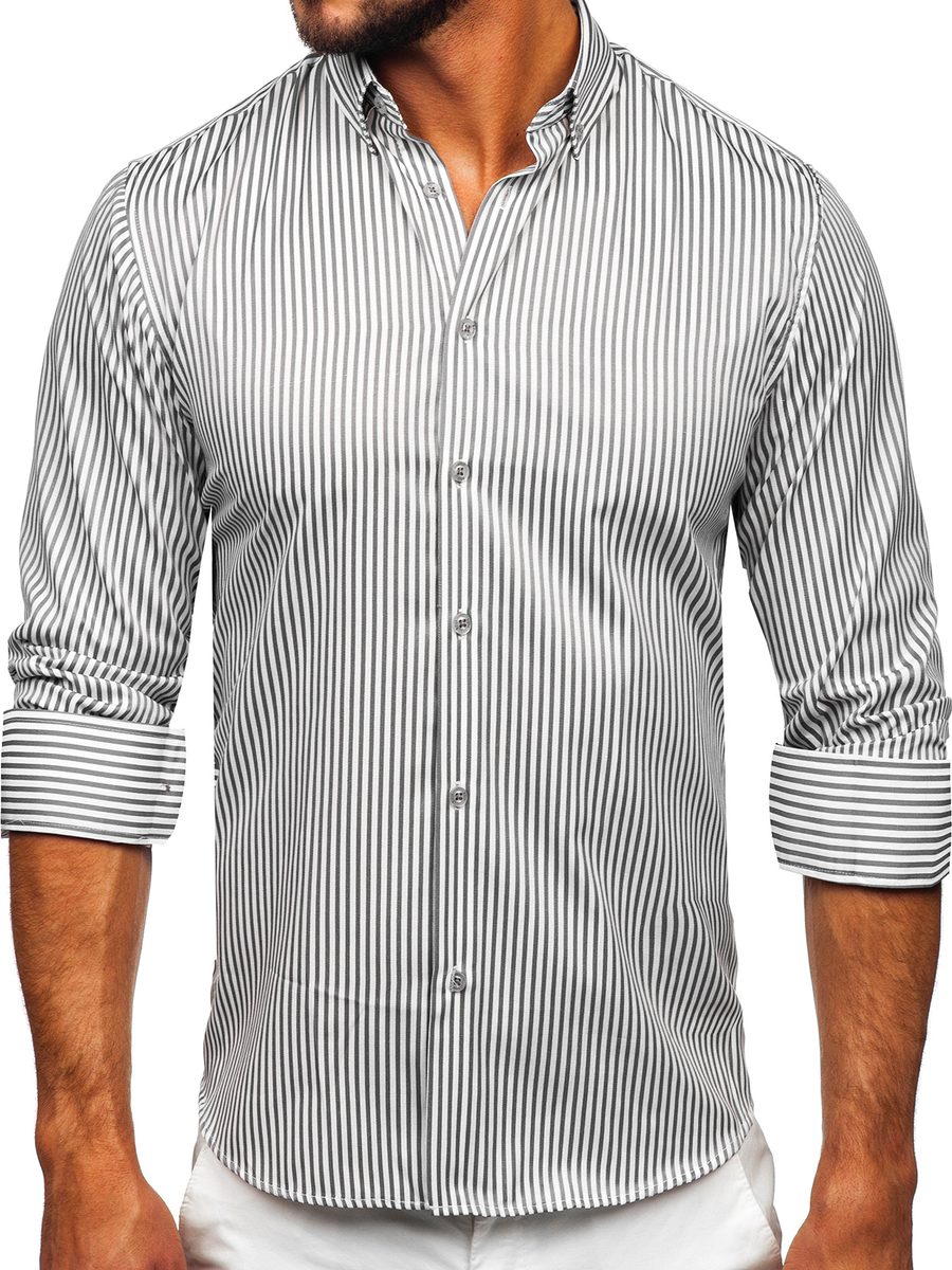 Opiniile utilizatorilor despre Cămașă gri în dungi cu mâneca lungă Bolf 22731