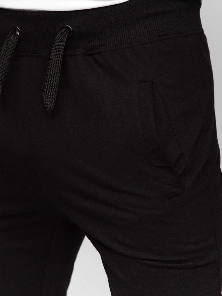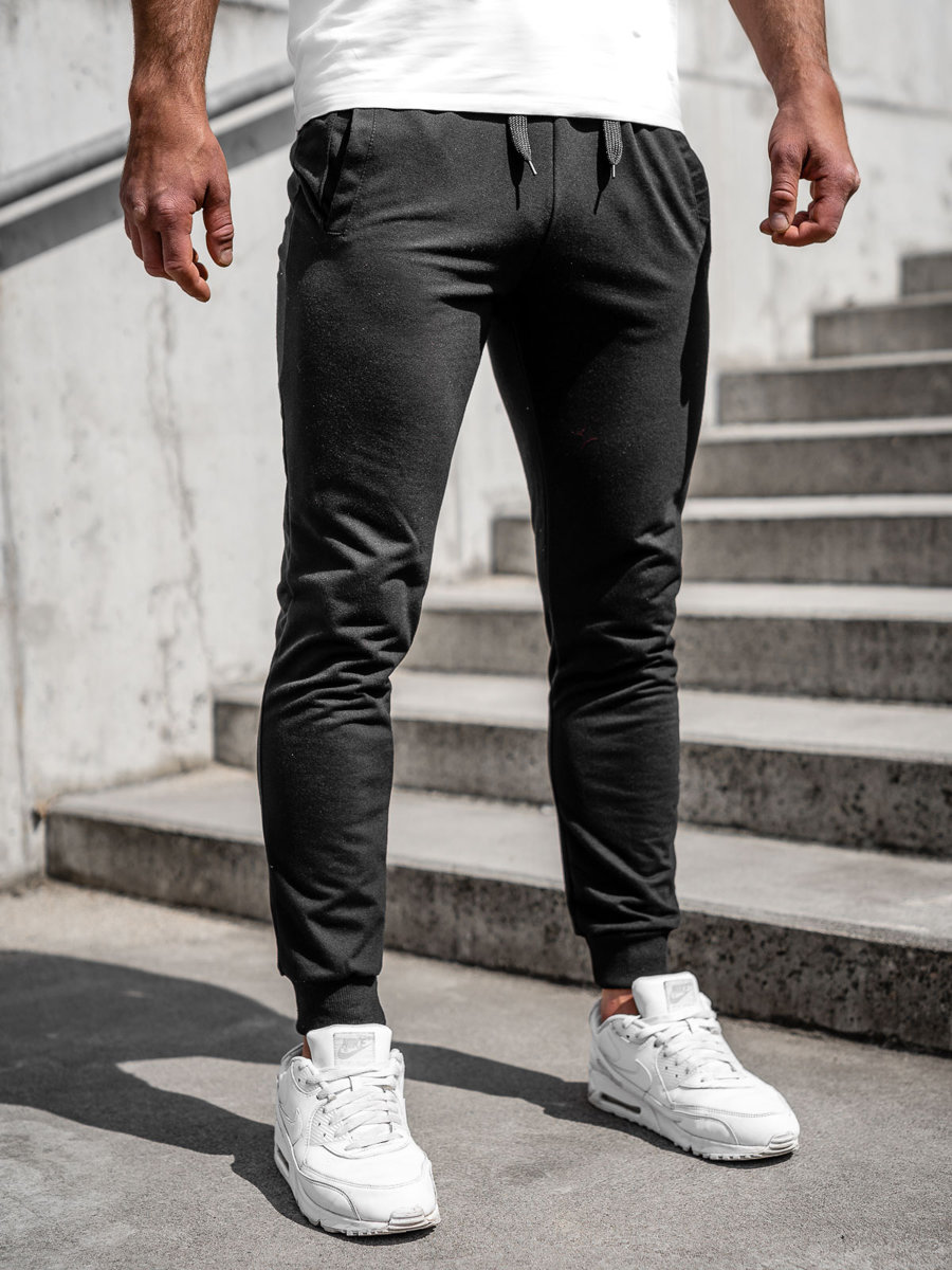 Pantaloni de trening Bolf XW02A culoare neagră Este un model pentru bărbații ce preferă stilul sport în ținutele zilnice. Sau pentru persoanele ce preferă sportul și hainele comode pentru antrenamente. Pantalonii sunt reglabili în talie cu elastic practic și șnur. Terminația la picioare cu elastic. Pe laterală au două buzunare fără închidere.