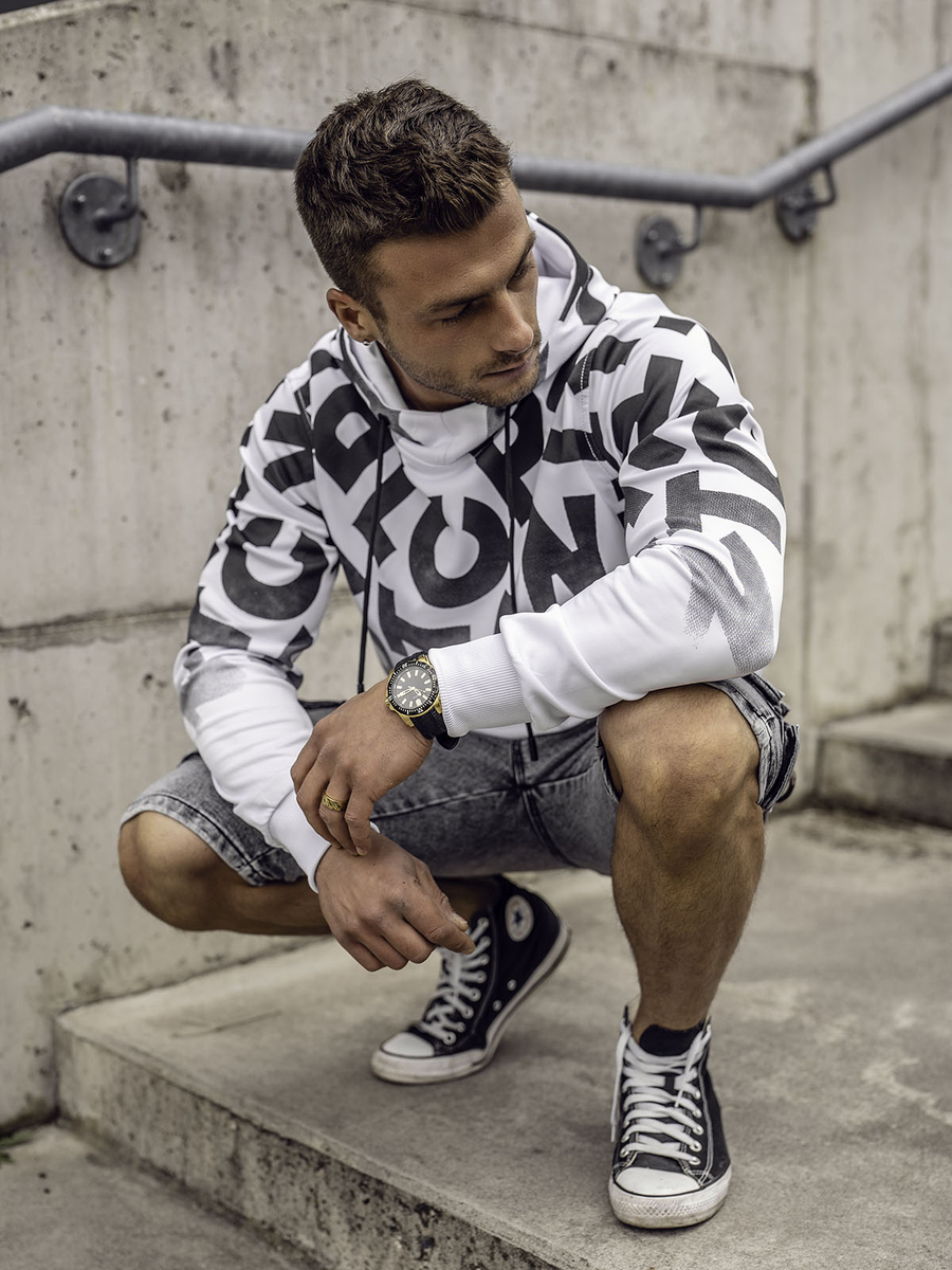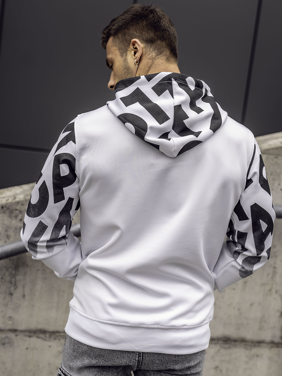 Bluza neagră-albă Bolf 8B992 va fi un model excelent pentru bărbații ce prețuiesc activitățile fizice sau stil sport. Bluza este plăcuta la atingere, respirabilă și foarte comodă la purtare. Se va potrivi ideal la trening, sală sau plimbare în aer liber. Are glugă reglabilă cu șnur ce asigură protecție de vant, ploaie și frig. Finisarea și mânecile cu elastic, datorită căruia se va potrivi excelent pe silueta. Poartă cu pantaloni joggera si vestă.