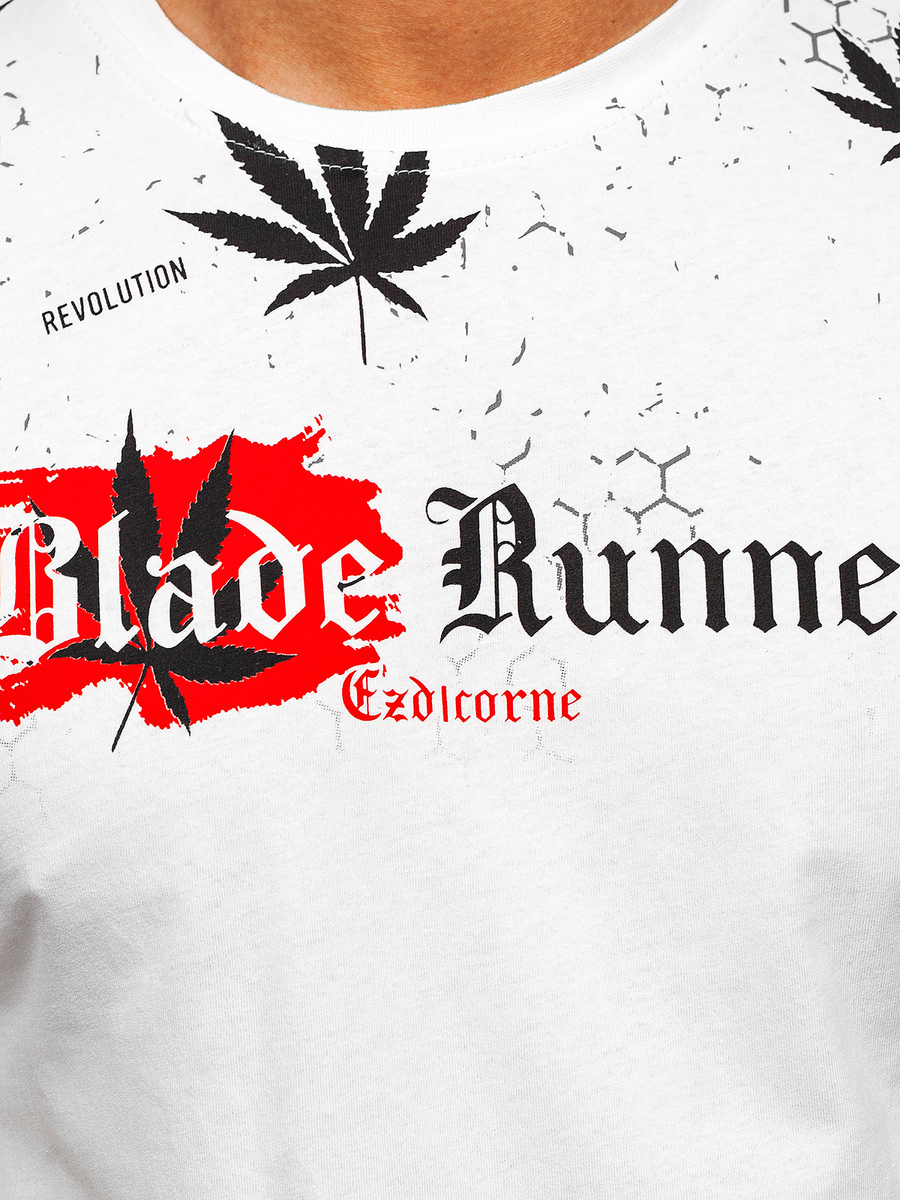 Un tricou alb pentru bărbați din bumbac cu imprimeu Bolf 14744 va fi o completare excelentă pentru stilul de zi cu zi și pentru sport. Decolteul rotund și mânecile scurte subliniază bine umerii. Croiala slim fit face ca tricoul sa se potriveasca perfect siluetei. Tricoul este realizat din bumbac 100%, ceea ce il face extrem de moale si placut la atingere. Imprimeul din față atrage atenția și conferă un caracter tineresc. Tricoul va arăta grozav combinat cu un hanorac cu fermoar și joggeri.