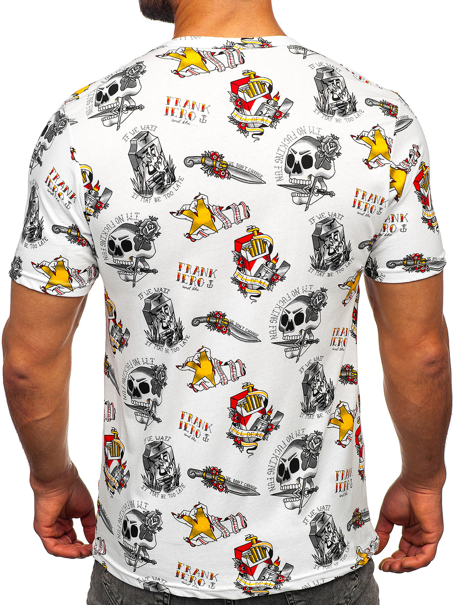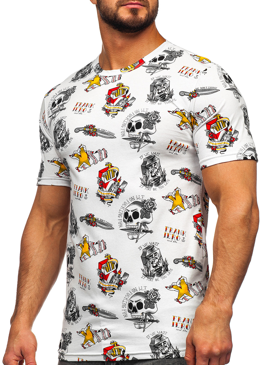 Tricou cu imprimeu pentru bărbați Bolf 14963 este o propunere pentru bărbații cărora nu le este frică de modele și le place să iasă în evidență în mulțime. Perfect pentru întâlnirea cu prietenii, ieșirea în oraș sau în fiecare zi. Fabricat din bumbac 100%, ceea ce îl face moale la atingere și flexibil. Croiala slim fit subliniază perfect silueta, iar modelul stilat pe toată suprafața îi conferă un caracter la modă. Va arăta excelent cu pantaloni tip baggy. Disponibil în mai multe culori.