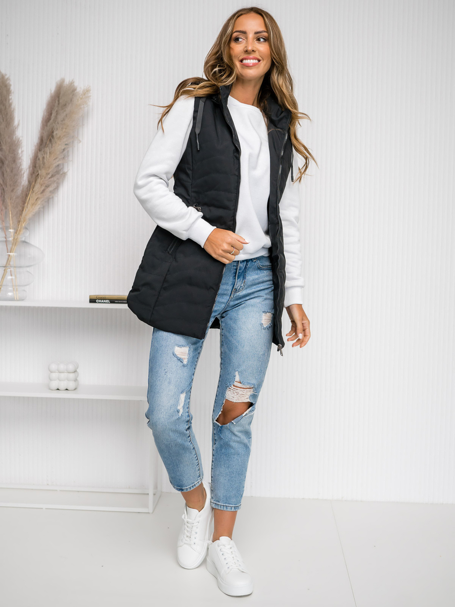 Vestă lungă matlasată Bolf 7633 un model ideal pentru sezonul de toamnă-iarna. Confecționati din material moale și plăcuti la atingere. Modelul matlasat conferă stil. Are glugă practică detașabilă ce va proteja de vant și frig în zilele reci. Croiala lungă asigură că se va așeza excelent pe siluetă și se va potrivi ca alternativă pentru gecile clasice. Are buzunare cu închidere pe laterală unde poți păstra diverse lucruri. Va arăta excelent în combinare cu puloversi blugi