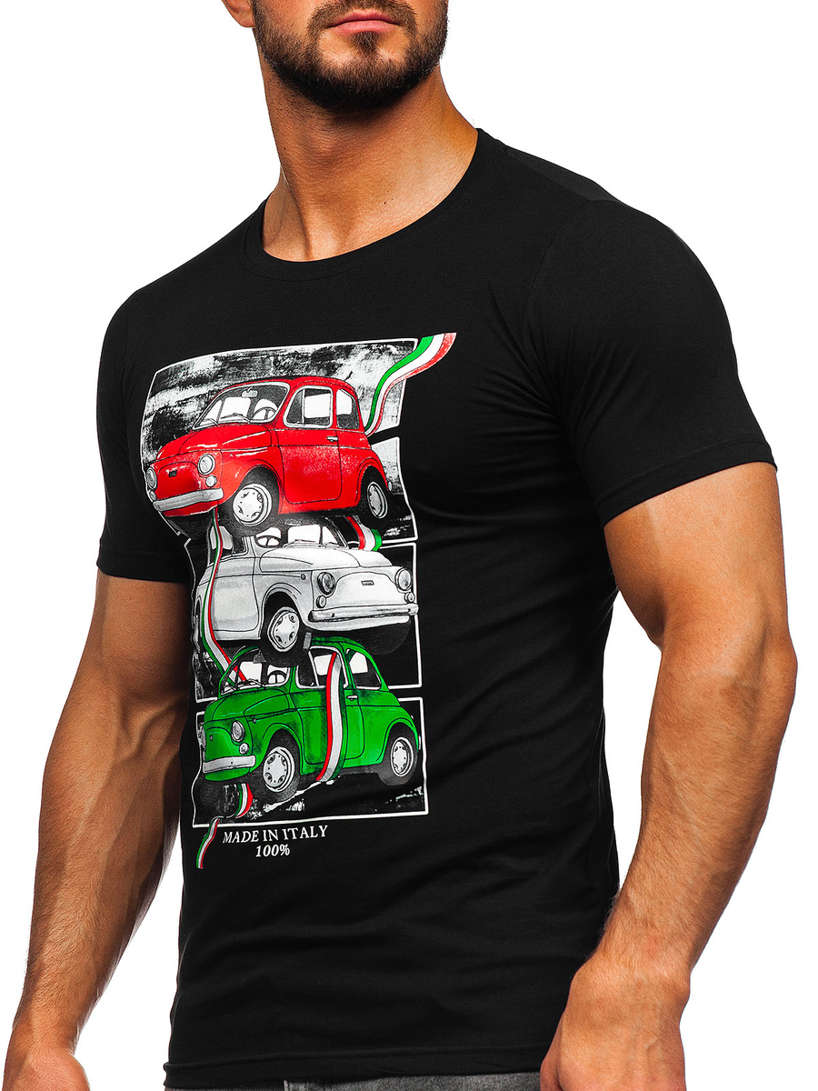 Tricoul pentru bărbați cu imprimeu negru Bolf HM918 este o alegere excelentă pentru purtarea de zi cu zi. Fabricat din bumbac de înaltă calitate, este moale și plăcut la atingere. Amestecul de elastan în compoziție asigură o elasticitate adecvată a materialului, datorită căruia este confortabil de purtat și nu restricționează mișcarea. Tricoul subliniaza perfect silueta si bratele. Imprimeul la modă în partea frontală va atrage atenția. Va arăta fantastic pentru stilizările de zi cu zi și urbane. Combină cu tricou tip baseballși pantaloni cargo.