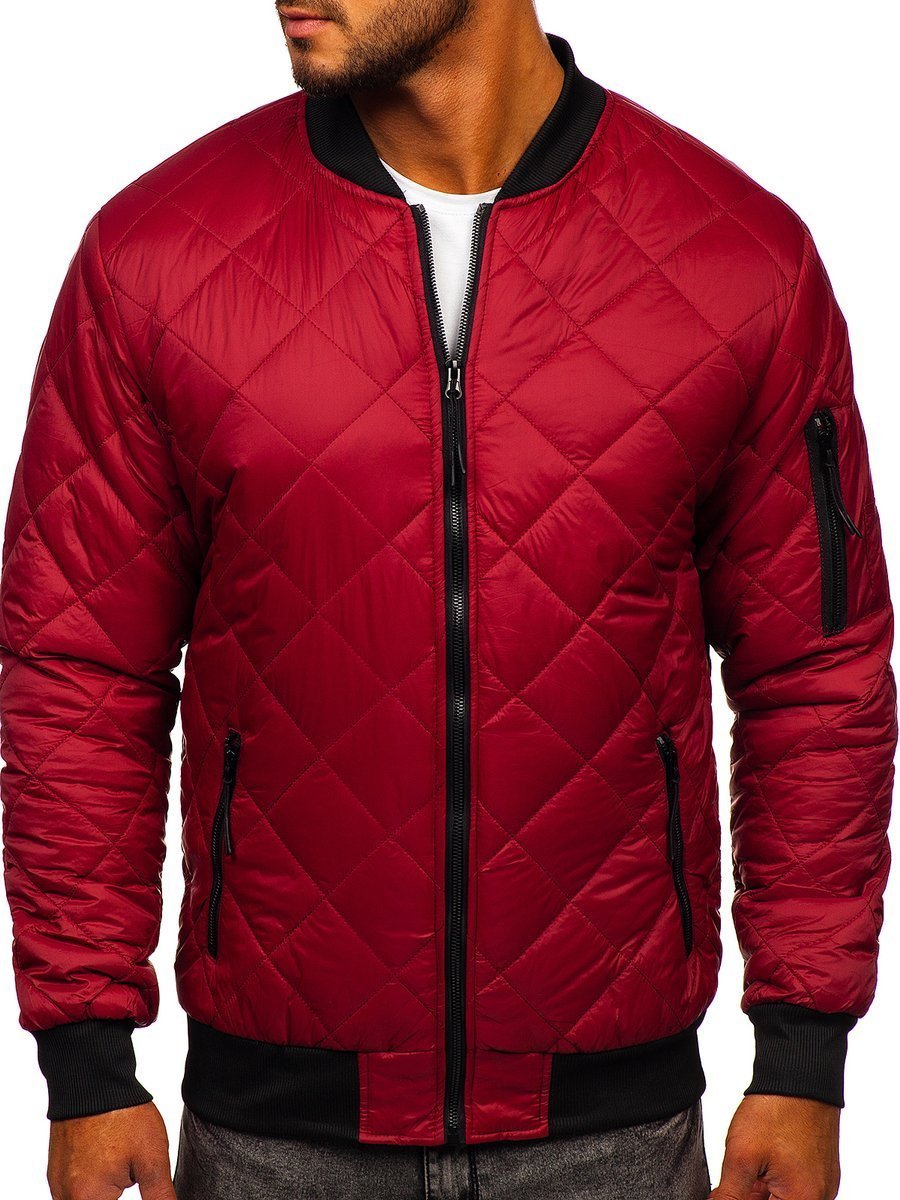Geacă bordo bombers Bolf MY-01A un model excelent. Geaca este stilată și practică poate fi de asemenea purtată in mai multe sezoane. Geaca se va înscrie ideal in trendurile modei actuale, confectionata din material plăcut la atingere Este matlasată in romburi. Are guler tip tunică cu inchidere la fermoar. Mânecile, gulerul cu finisare elastice negre Jacheta bomber are două buzunare exterioare practice cu fermoar. De asemenea, are un buzunar suplimentar cu fermoar pe mâneca stângă.