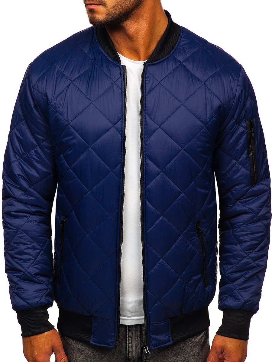 Geacă bleumarin bombers Bolf MY-01A un model excelent. Geaca este stilată și practică poate fi de asemenea purtată in mai multe sezoane. Geaca se va înscrie ideal in trendurile modei actuale, confectionata din material plăcut la atingere Este matlasată in romburi. Are guler tip tunică cu inchidere la fermoar. Mânecile, gulerul cu finisare elastice negre Jacheta bomber are două buzunare exterioare practice cu fermoar. De asemenea, are un buzunar suplimentar cu fermoar pe mâneca stângă.
