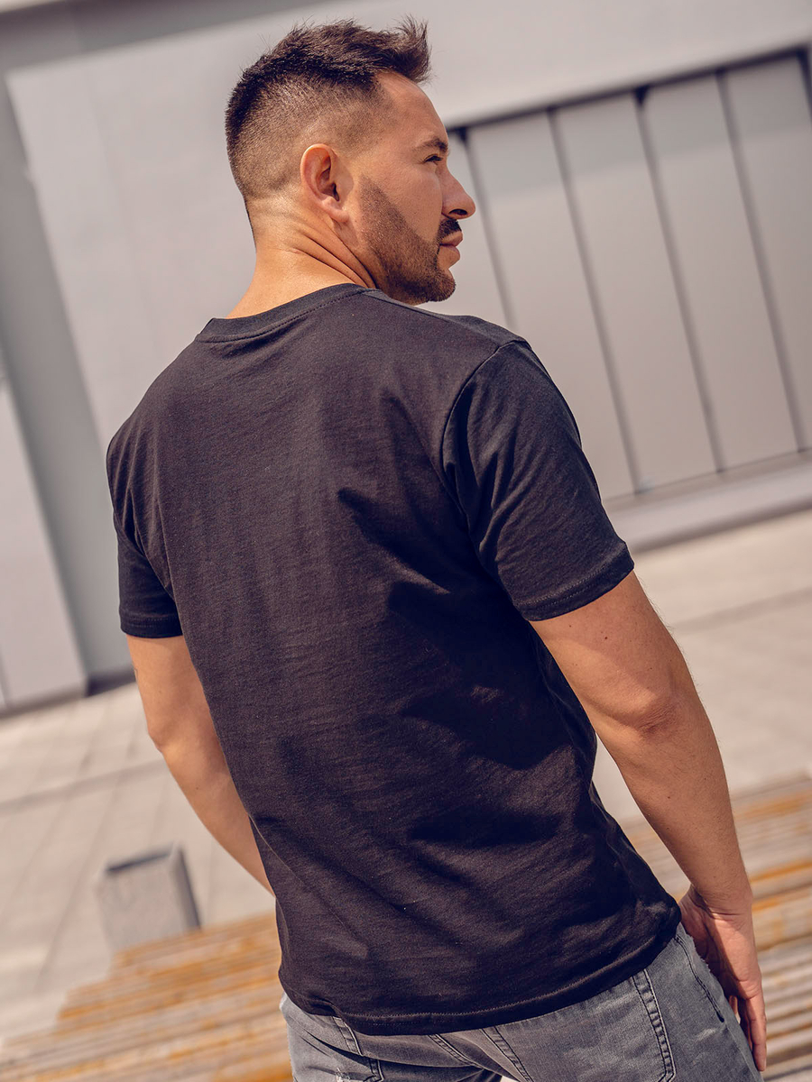 Tricoul negru din bumbac cu imprimeu pentru bărbați Bolf KS1997 va arăta grozav cu orice ținută! Imprimeul distinctiv îi conferă o notă modernă care îți va completa look-ul. Tricoul cu croiala simplă și decolteu rotunjit, se va așeza excelent pe siluetă. Produsul este fabricat din bumbac 100%, fiind incredibil de confortabil și potrivit pentru orice circumstanțe. Un tricou este o bază excelentă pentru a crea ținute la modă, indiferent de ocazie sau anotimp. Împreună cu pantaloni scurți, creează aspectul urban perfect de vară. Împreună cu pantaloni chino, creează un aspect la modă, mai formal.