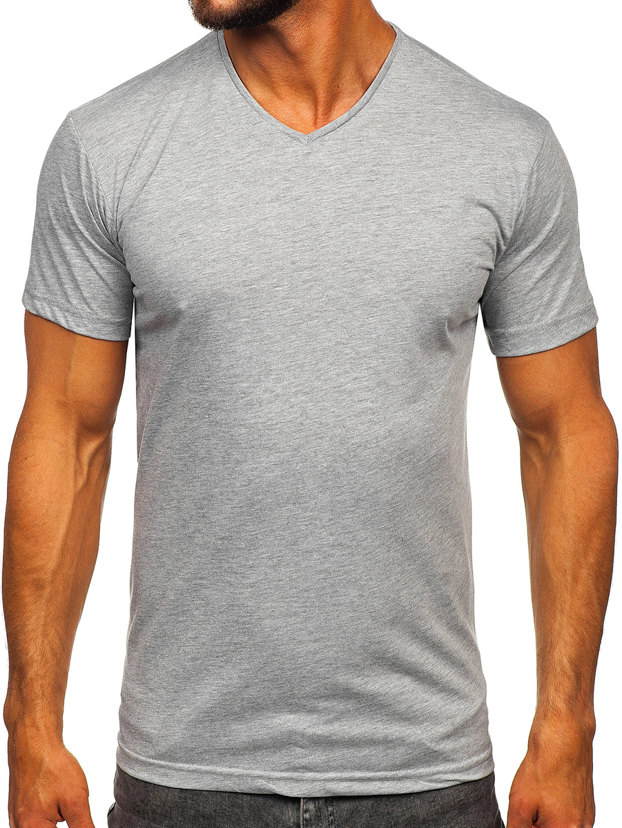 Opiniile utilizatorilor despre Tricou bărbătesc gri, simplu, cu decolteu în V Bolf 192131