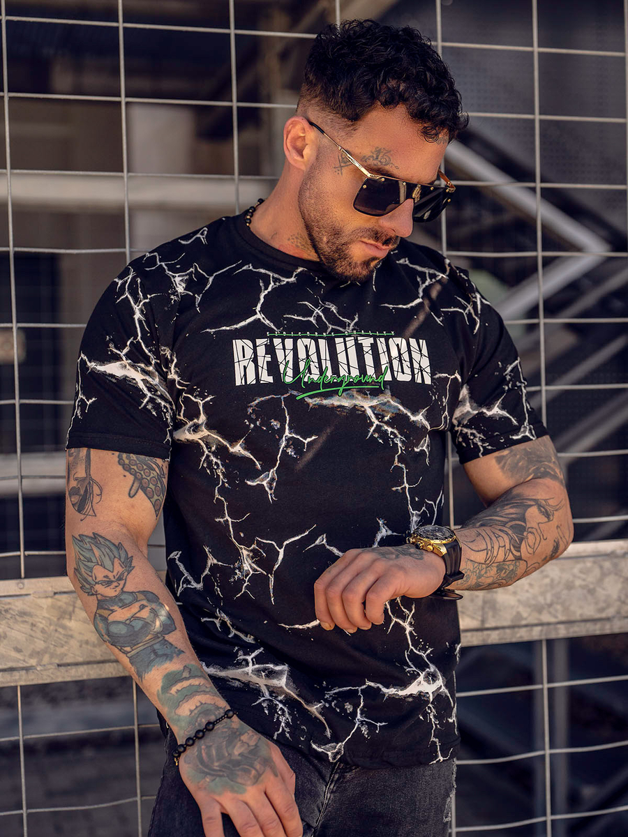 Tricoul bărbătesc din bumbac imprimat Bolf 14717A se va potrivi bine cu o jachetă bomber și pantaloni militari. Decolteul rotund și partea de jos dreaptă a tricoului subliniază bine silueta. Materialul din care este fabricat este plăcut la atingere, flexibil și aerisit. Tricoul este perfect atât pentru purtarea de zi cu zi, cât și pentru sală. Imprimeul de pe față și pe mâneci adaugă caracter. Tricou disponibil în mai multe culori și mărimi: M, L, XL și 2XL.