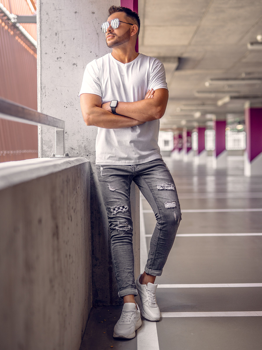 Tricou simplu cu decolteu în V Bolf 192131A. Tricou bărbați culoare albă. Se potrivește excelent pe fiecare siluetă, se așează pe corp. Confecționat din material plăcut și moale. Acest model este confecționat în câteva culori, îl poți combina cu multe alte culori și modele.