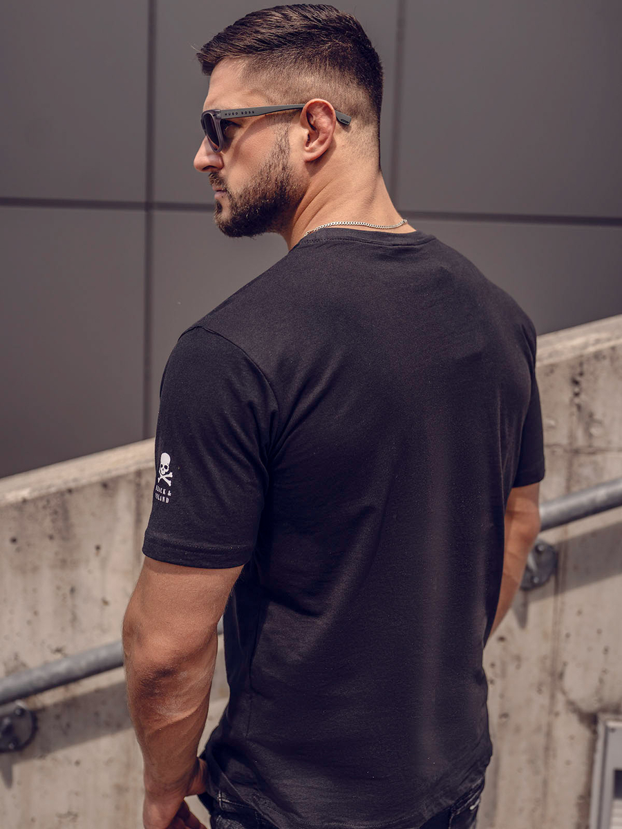 Cauți un tricou minunat și original? Tricoul negru Bolf 14784A va fi pe placul tău. Confecționat din 100% bumbac ce asigură că este plăcut la atingere. Modelul slim fit asigură că este excelent și se potrivește pe siluetă. Va arăta minunat în combinare cu blugi și geacă bomber. Tricoul este disponibil în diferite culori.