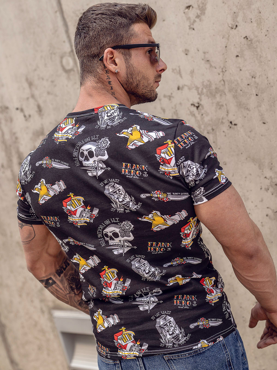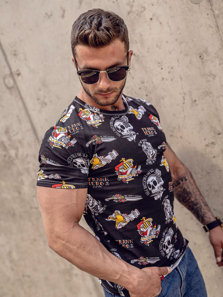 Tricou cu imprimeu pentru bărbați Bolf 14963A este o propunere pentru bărbații cărora nu le este frică de modele și le place să iasă în evidență în mulțime. Perfect pentru întâlnirea cu prietenii, ieșirea în oraș sau în fiecare zi. Fabricat din bumbac 100%, ceea ce îl face moale la atingere și flexibil. Croiala slim fit subliniază perfect silueta, iar modelul stilat pe toată suprafața îi conferă un caracter la modă. Va arăta excelent cu pantaloni tip baggy. Disponibil în mai multe culori.