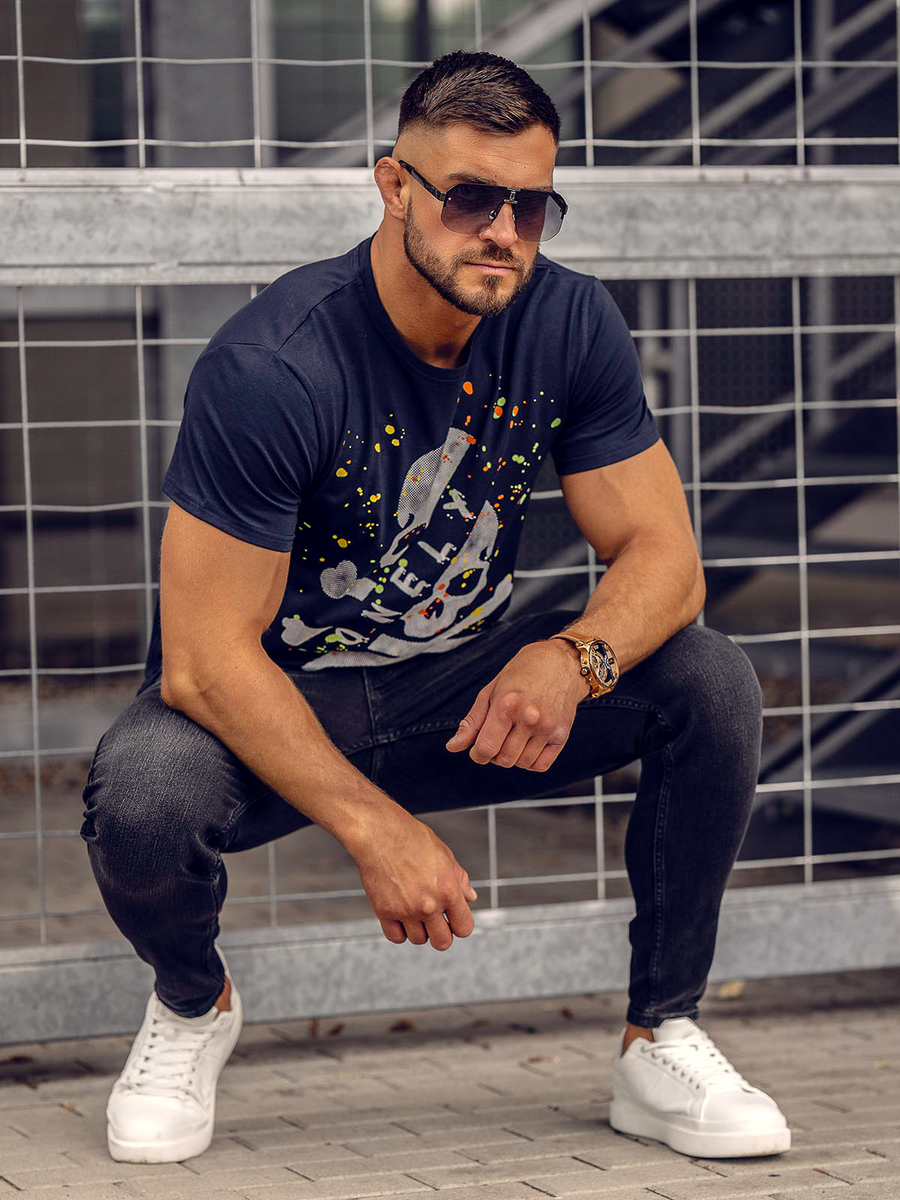 Tricoul bleumarin Bolf Y70008A are decolteu rotunjit. Confecționat din bumbac si poliester, datorită căruia sunt elastici si plăcuti la atingere. Se vor potrivi excelent in oras sau intalnirile cu prietenii. Tricoul de culoare clasica se poate combina practic in fiecare stilizare. Produsul are un design excelent si imprimeu in partea frontala. Combină cu blugi, joggers sau pantaloni de training creează o combinare excelenta.. Tricoul se poate imbraca cu bluza sau vestă.