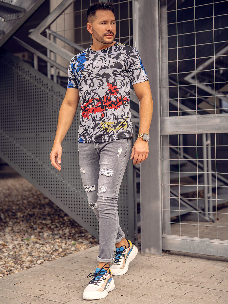 Tricoul gri cu imprimeu Bolf 14901A va arăta excelent in ținutele urbane sau la plimbări si intâlnirile cu prietenii. Designul original va fi pe placul tău te vei evidenția din multime. Produsul are decolteu rotunjit si confectionat din 100% bumbac ce conferă ca este elastic. Produsul este destinat pentru cei care preferă stilul urban. Va arăta excelent in combinare cu joggers si blugi.