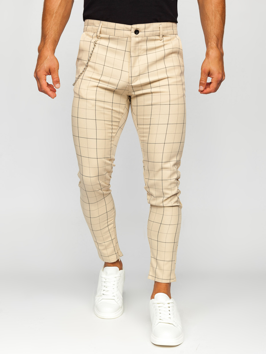 Opiniile utilizatorilor despre Pantaloni chino în carouri bej pentru bărbați de la Bolf 0060