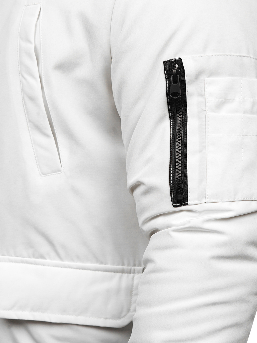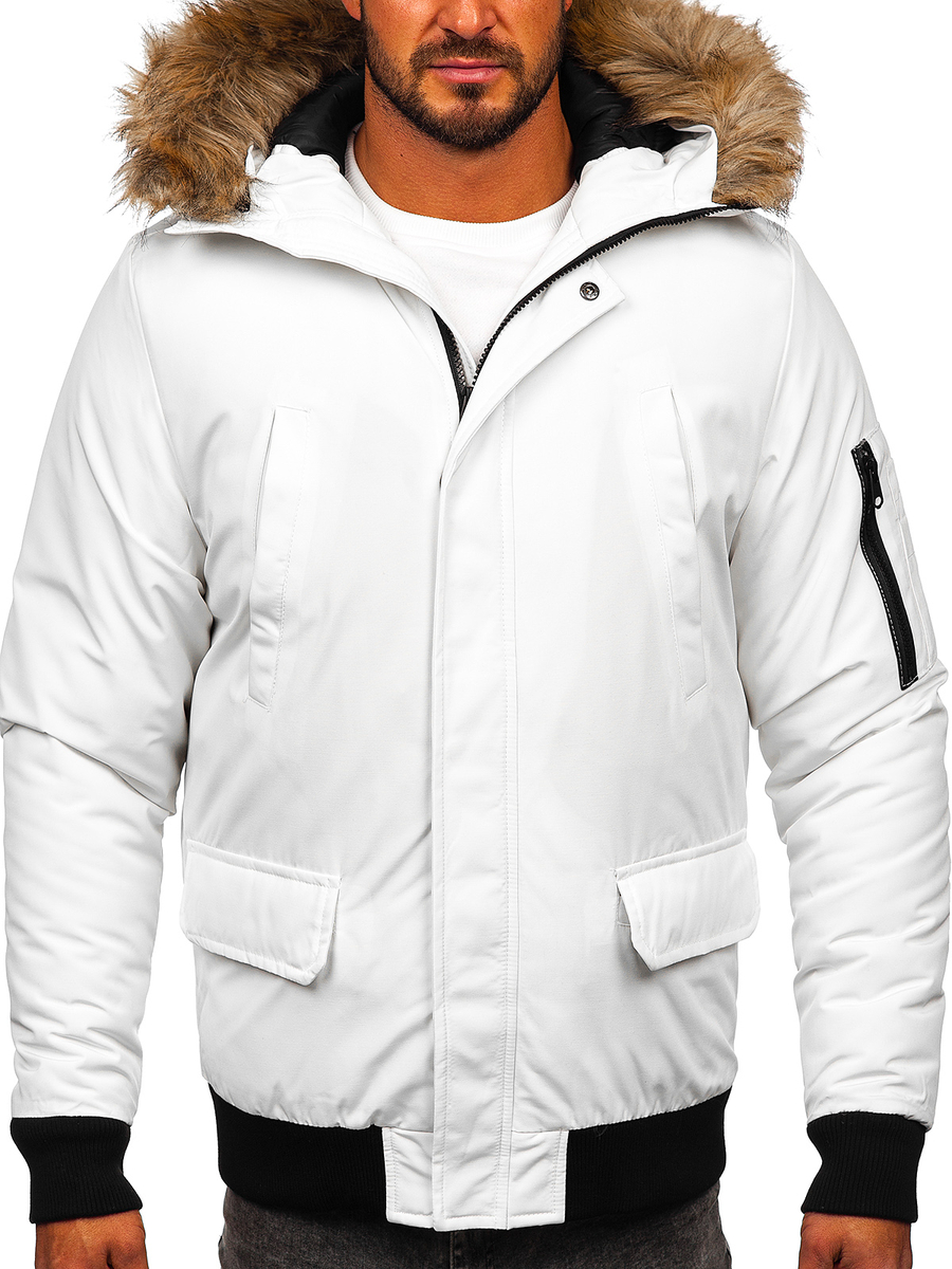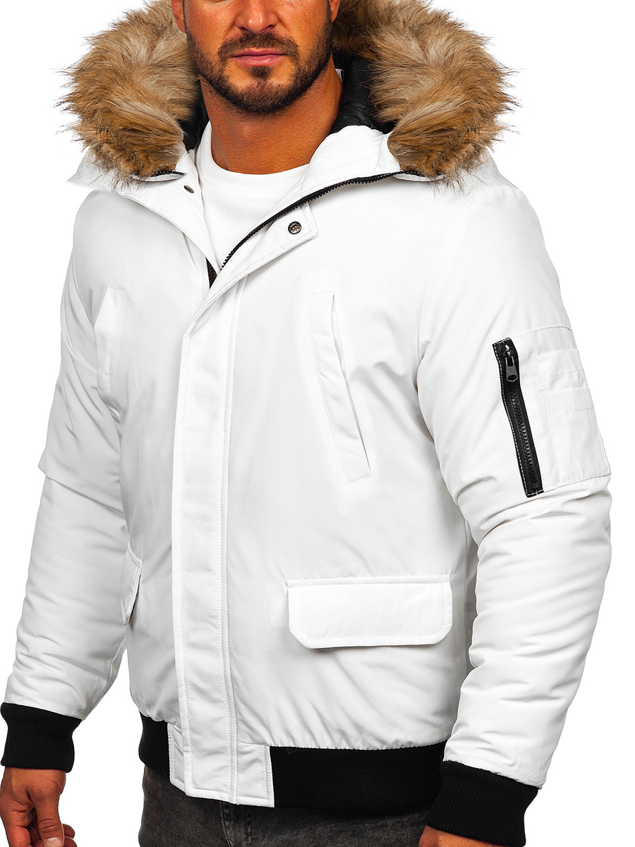 Geci de iarnă albe Bolf, ideale în zilele friguroase cu buzunare mari și blană frumoasă la glugă. Sunt comode, călduroase, posedă buzunare cu închidere la nasturi metalici. Geaca albă de iarnă se potrivește în fiecare ținută zilnică. Îmbracă cu pulover sau bluză, combină cu blugi și pantaloni trening.
