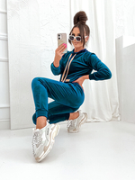Dacă preferi culorile expresive și îți place să fii în centrul atenției, atunci compleul de catifea Bolf 637 este pentru tine. Modelul expresiv și culoarea unică este minunată. Bluza are guler cu șnur auriu decorativ ce atrag atenția. Treningul a fost confecționat din 95% bumbac și 5% poliester ce asigură că este elastic și plăcut la atingere. Bluza și pantalonii sunt finisați cu elastici, datorită căreia evidențiază și subțiază silueta. Treningul suplimentar au două buzunare mari. Se va potrivi excelent cu vestă matlasată.