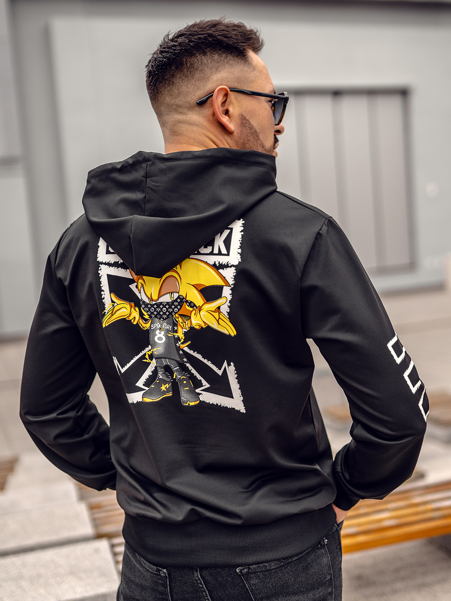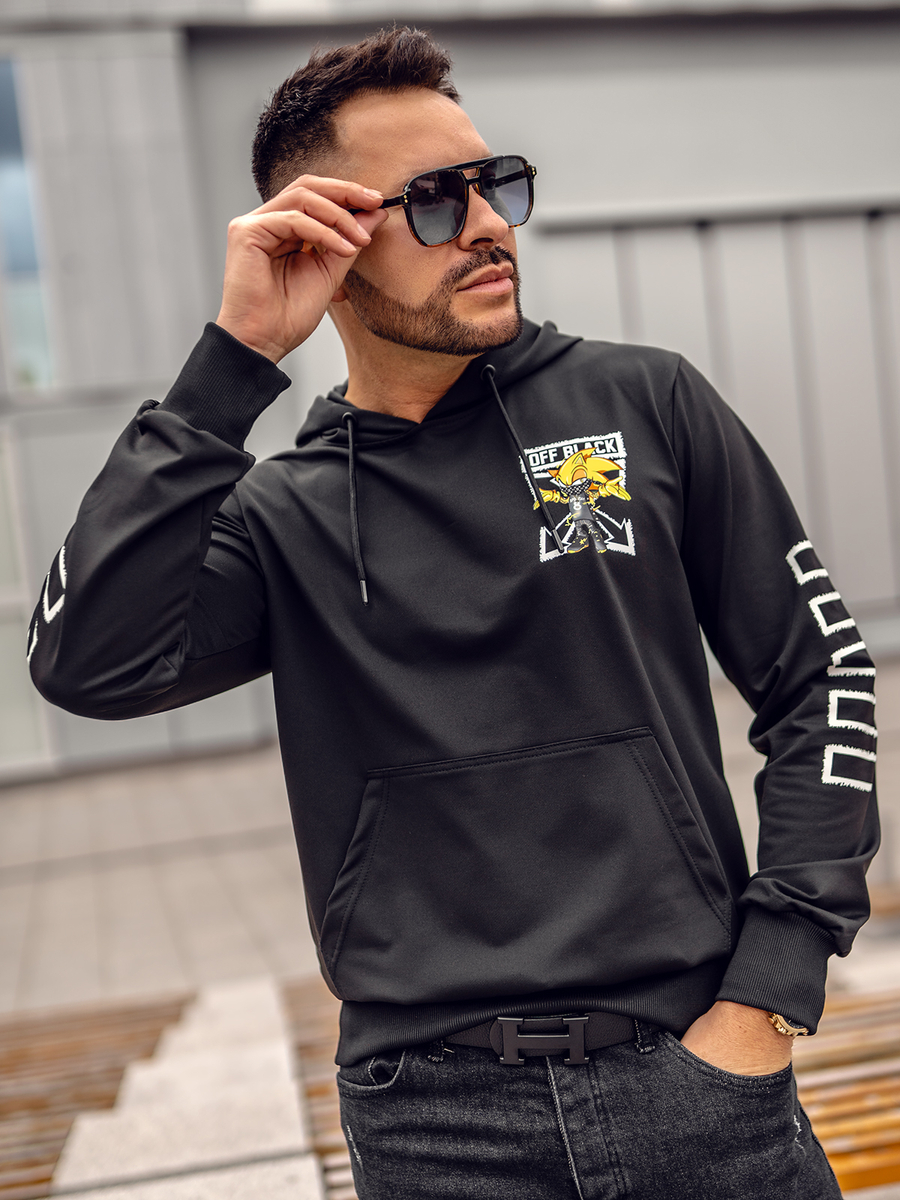 Hanoracul negru pentru bărbați Bolf HM611A cu imprimeu este un produs obligatoriu pentru fiecare sezon.Hanoracul are glugă cu două straturi, reglabilă cu șnur, care te va proteja de vânt și ploaie. Mânecile și finisarea cu o manșetă, ceea ce face ca hanoracul să se potrivească perfect cu silueta. Un element practic este buzunarul cangur. Produsul este confecționat din material plăcut la atingere. Imprimeul decorativ pe față și pe spate îi conferă un caracter unic. Bluza se combină cu bluză, trening, pantaloni cargosau chiar pantaloni chinos. Combină cutricou, geacă sau geacă de piele.