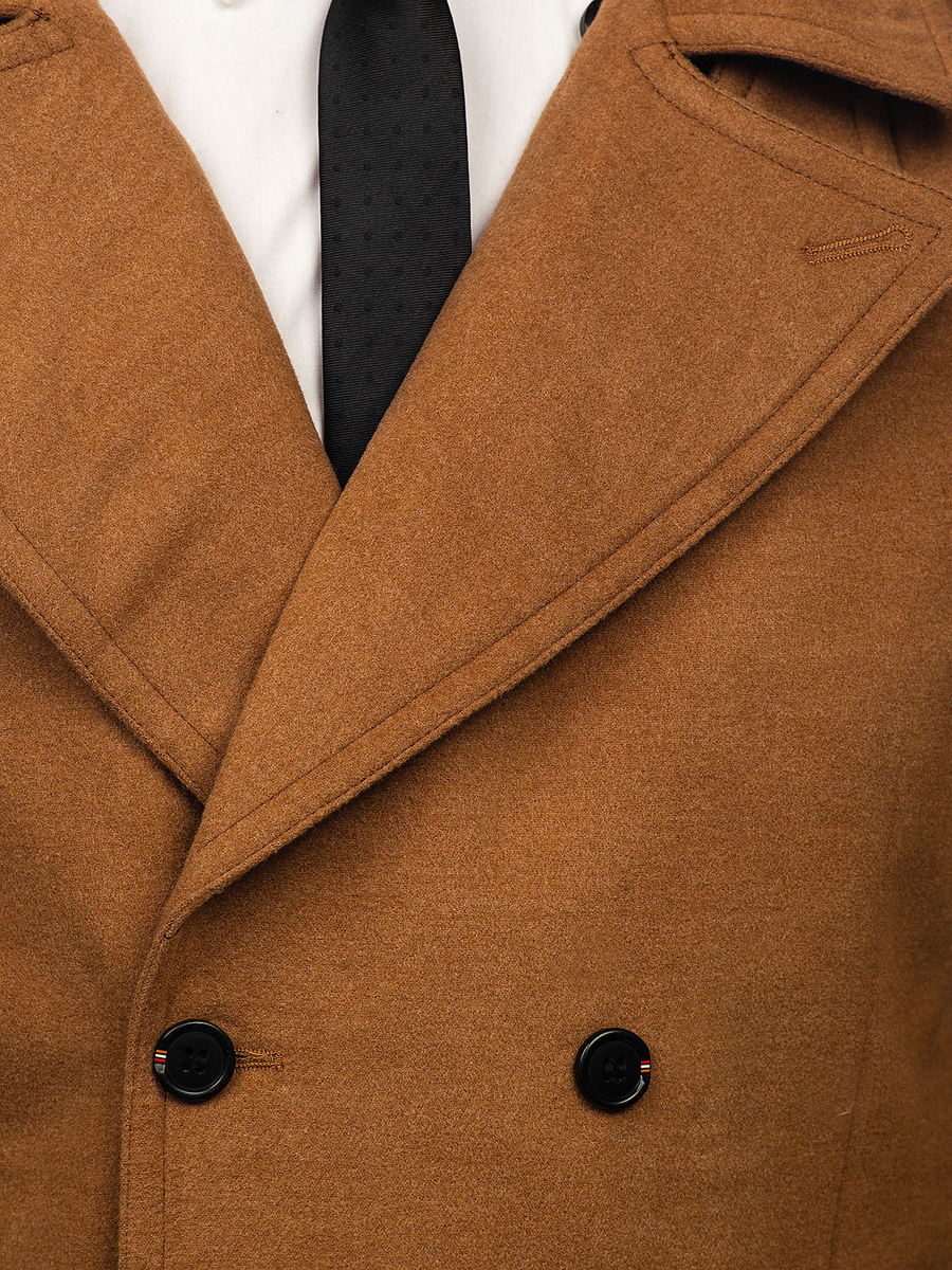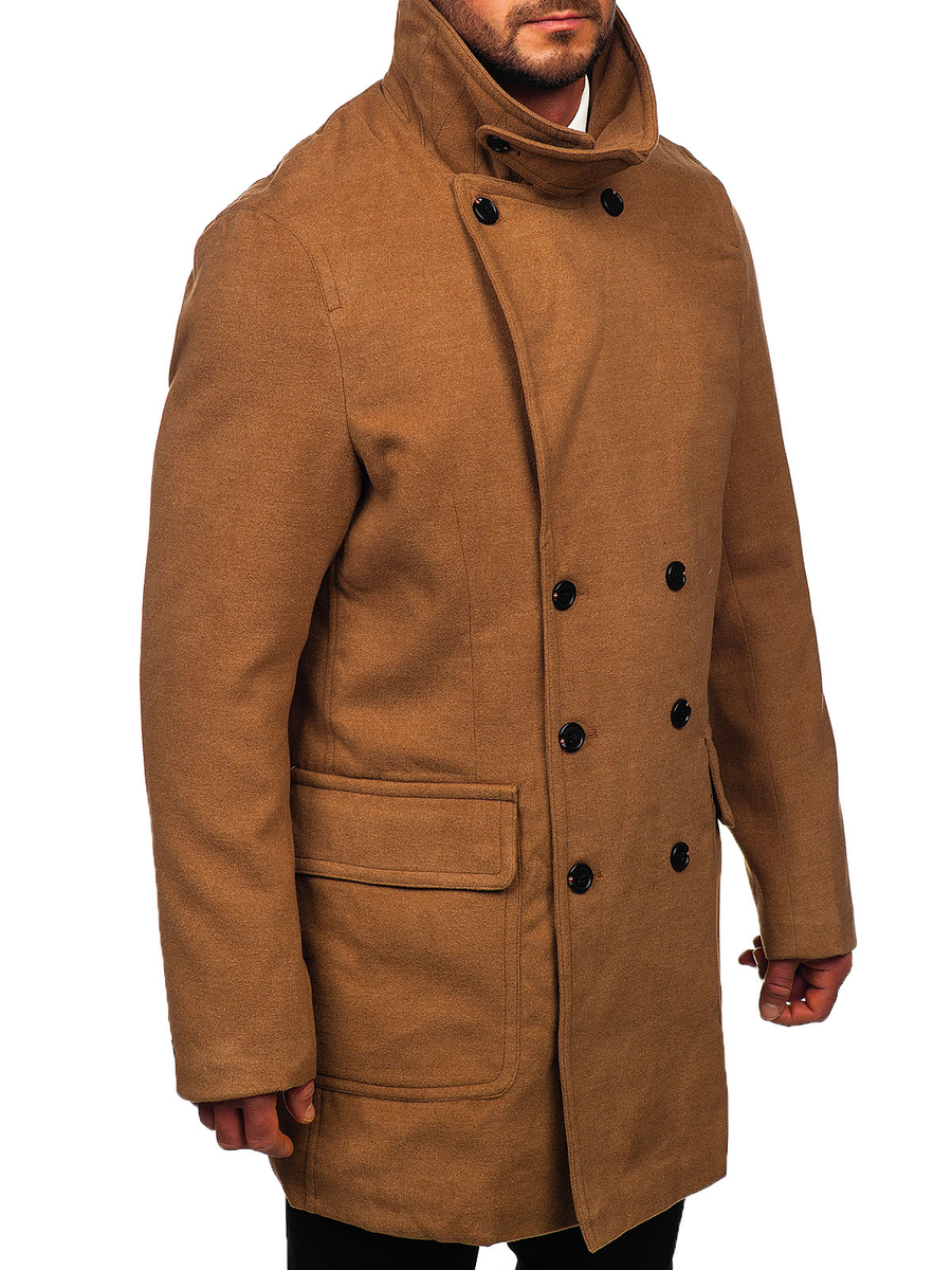 Paltonul de iarnă camel Bolf 1048 este confectionat din material calduros ideal de iarna. Se închide cu nasturi este elegant și comod. Are două buzunare exterioare cu închidere la nasturi și un buzunar interior cu nasture. Paltonul se așează excelent pe silueta barbatului. Are guler tip revers și închidere la gât Culoare camel se potriveste minunat în ținutele de culori mai închise sau culori mai curajoase.Paltonul are caracter formal va fi ideal în ținutele zilnice, la plimbare, iesire in oras sau intalnire de bussines. Se poate combina cu blugi, sau pantaloni chinos ori pulover, bluza si camasa.