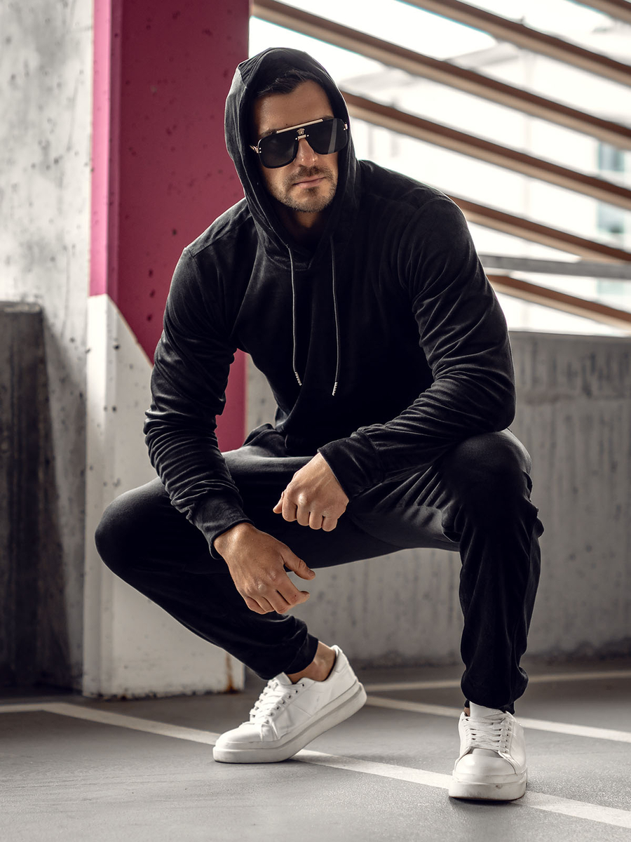 Opiniile utilizatorilor despre Trening negru velur cu glugă Bolf 8C1171A