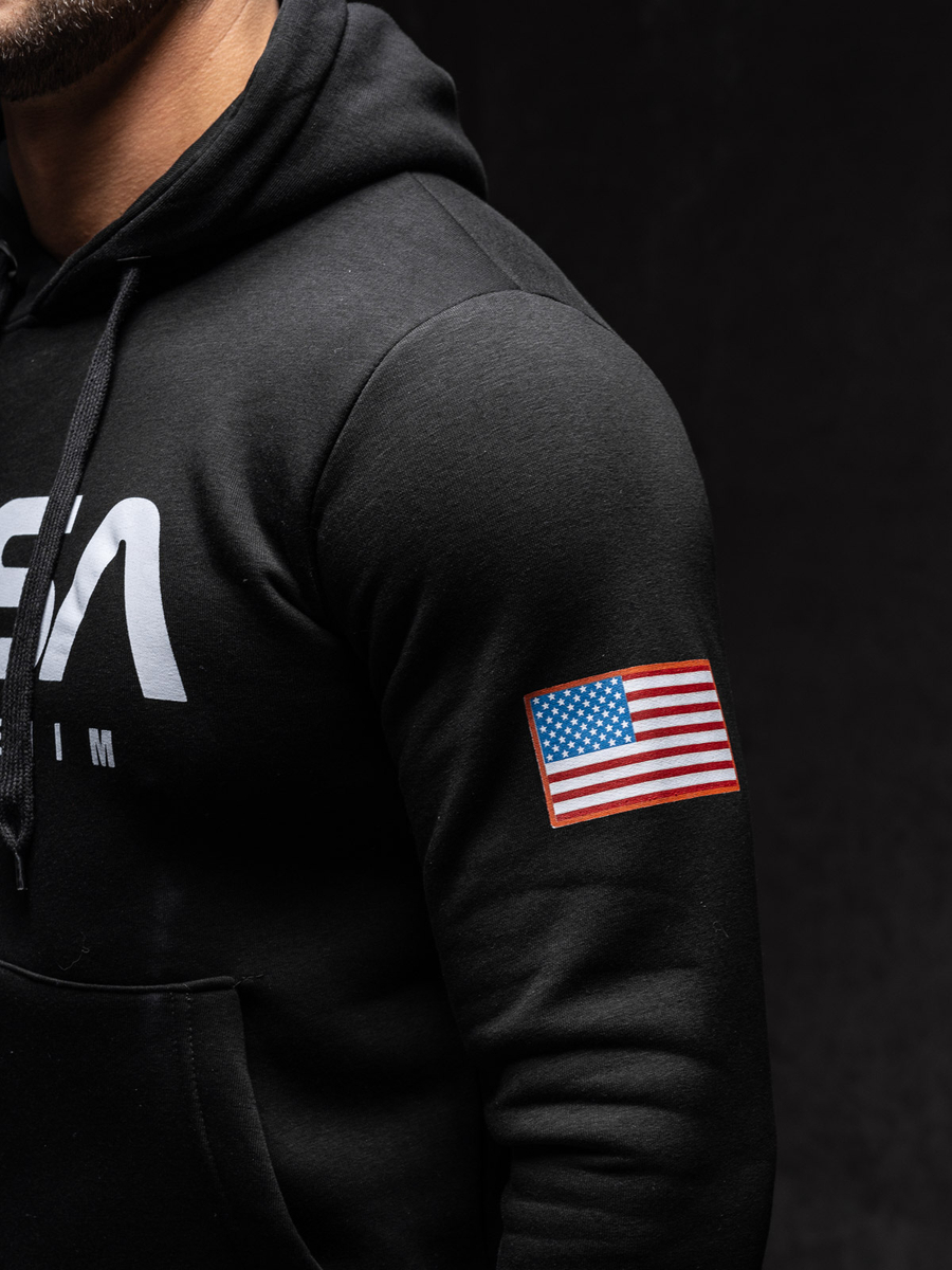 Hanoracul cangur pentru bărbați negru cu imprimeu BOLF 146956B este o alegere excelentă pentru bărbații care apreciază stilul, confortul și originalitatea.. Combină estetica sportivă cu un stil modern, perfect pentru o varietate de ocazii. Fabricat din material moale și durabil, asigură confort și libertate de mișcare. Gluga oferă protecție suplimentară împotriva vântului și frigului, iar imprimeul atractiv oferă hanoracului individualitate și un aspect unic. Datorită culorii universale, este ușor să o combinați cu alte articole vestimentare. Va fi potrivit pentru stilul de zi cu zi, casual sau sportiv. Combină cu blugi sau pantaloni cargo.
