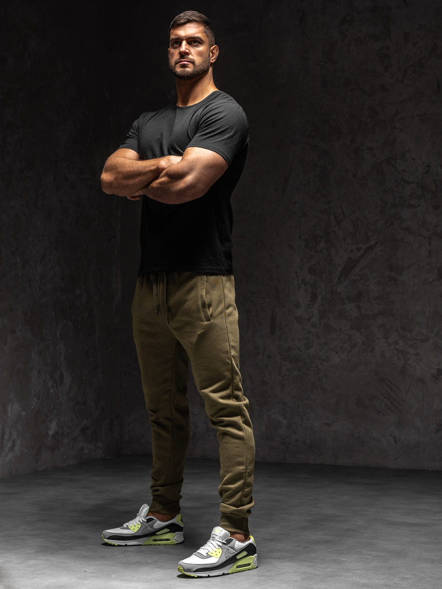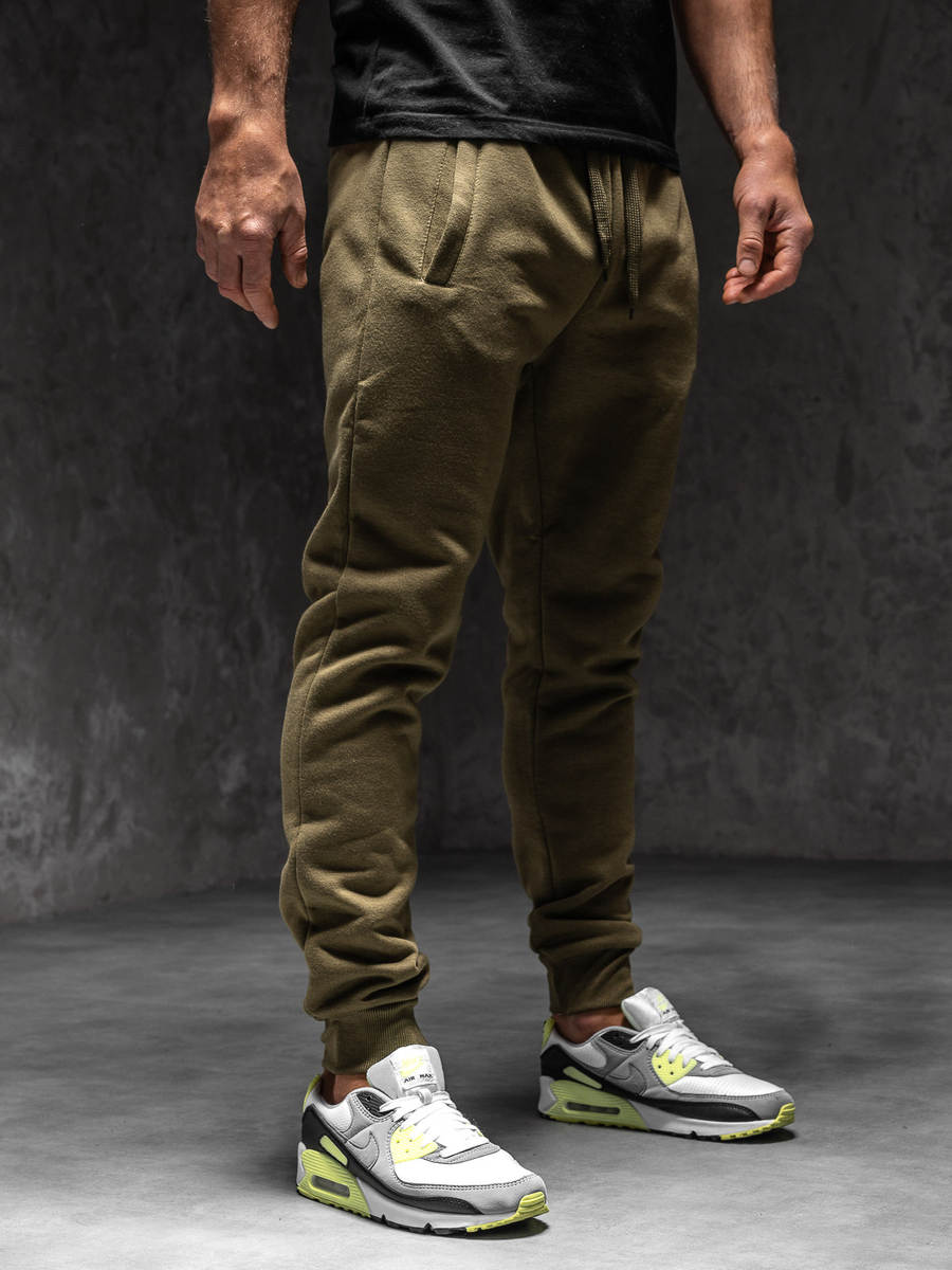Pantaloni de trening kaki XW01-C. Pantalonii au au reglare în talie cu șnur și elastic, doua buzunare pe laterală. Modelul simplu și elastice la picioare conferă un aspect sport . Produsul este confecționat din material delicat, plăcut la atingere, care se așează excelent pe corp.